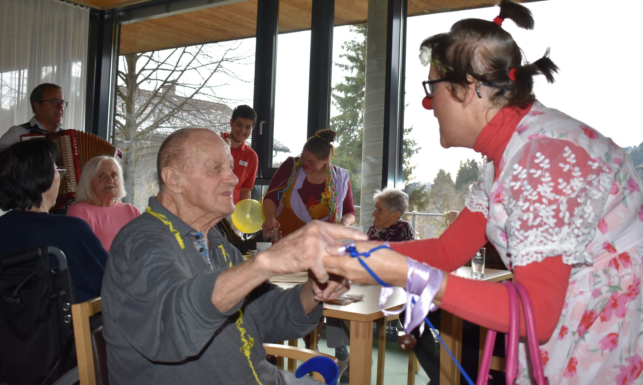 Am 19. November 2025 fand im Rahmen des Cafeteria-Nachmittags im BENEVIT Sozialzentrum Alberschwende eine besondere Veranstaltung statt, bei der die Begegnungsclowns zu Gast waren. Die Atmosphäre war von einer zauberhaften Fröhlichkeit geprägt, die durch die hervorragende Live-Musik des Trios „Habe die Ehre“ untermalt wurde. Die Veranstaltung zog zahlreiche Bewohner:innen an, die sich auf einen Nachmittag voller Lachen und Freude freuten. Die Begegnungsclowns, bekannt für ihre herzliche und humorvolle Art, interagierten mit den Gästen und sorgten für viele heitere Momente.
