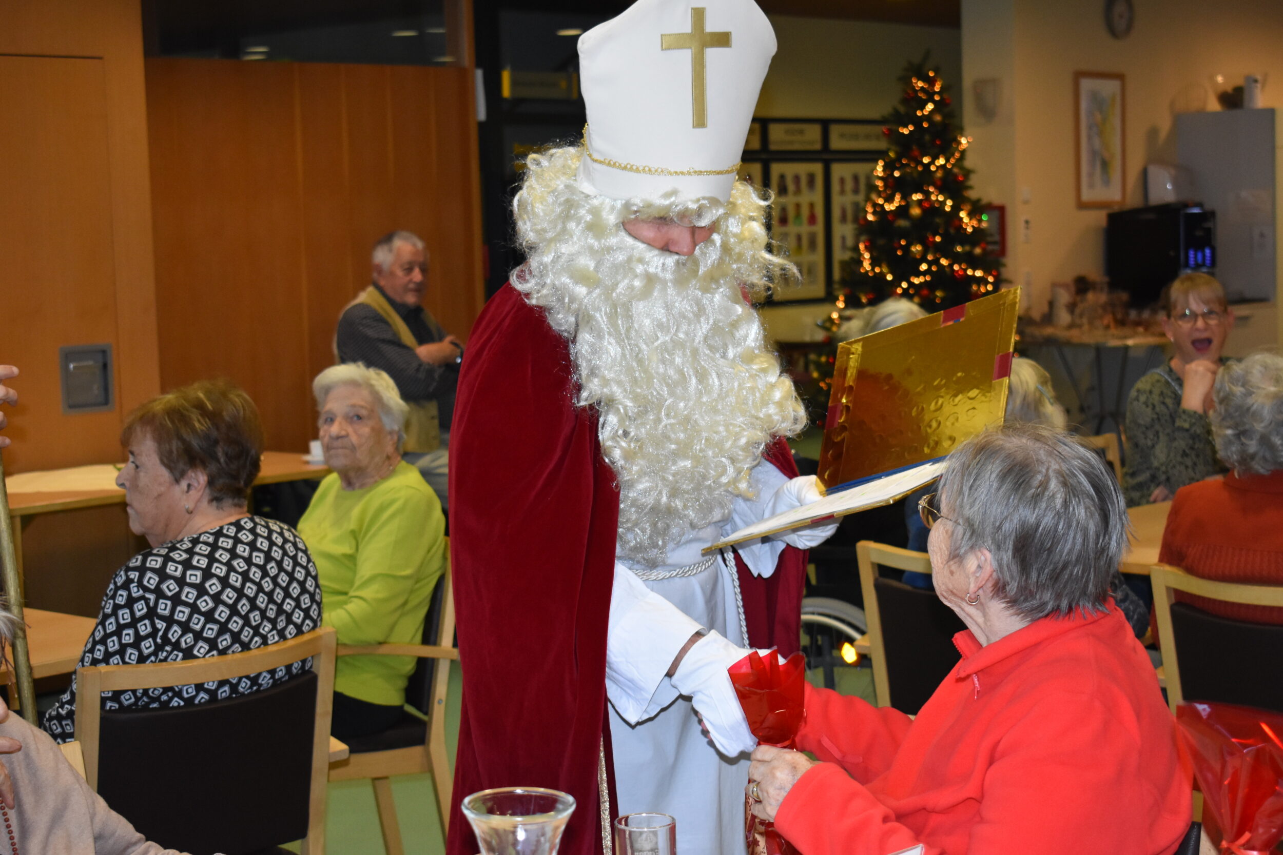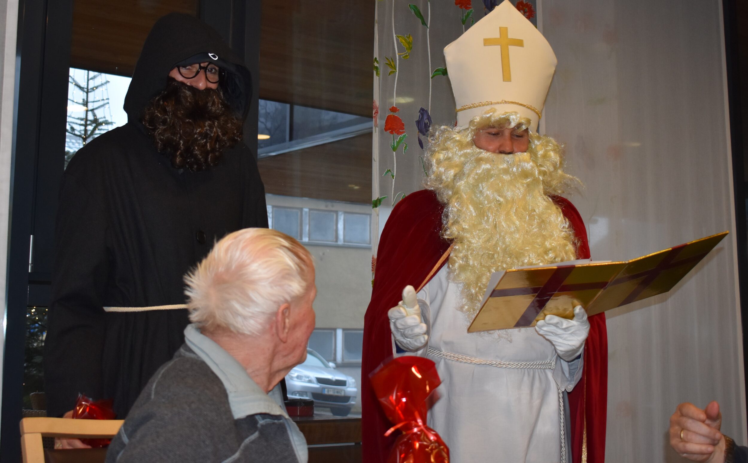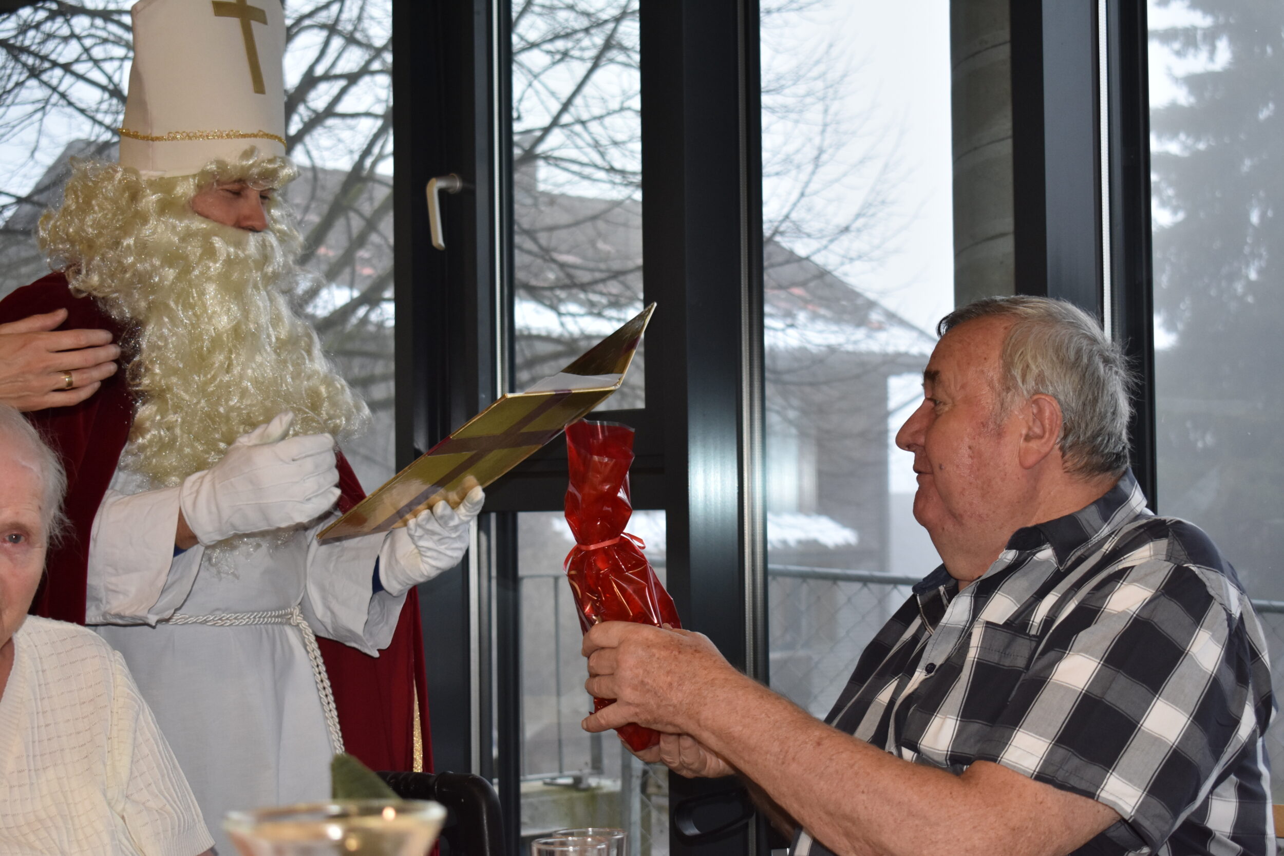 Der Nikolaus, gekleidet in seinem traditionellen roten Gewand und mit einem großen Sack voller Geschenke, wurde mit strahlenden Augen empfangen. Beide nahmen sich die Zeit, mit jedem Bewohner zu sprechen, hörten aufmerksam deren Geschichten und überreichten kleine Aufmerksamkeiten.
