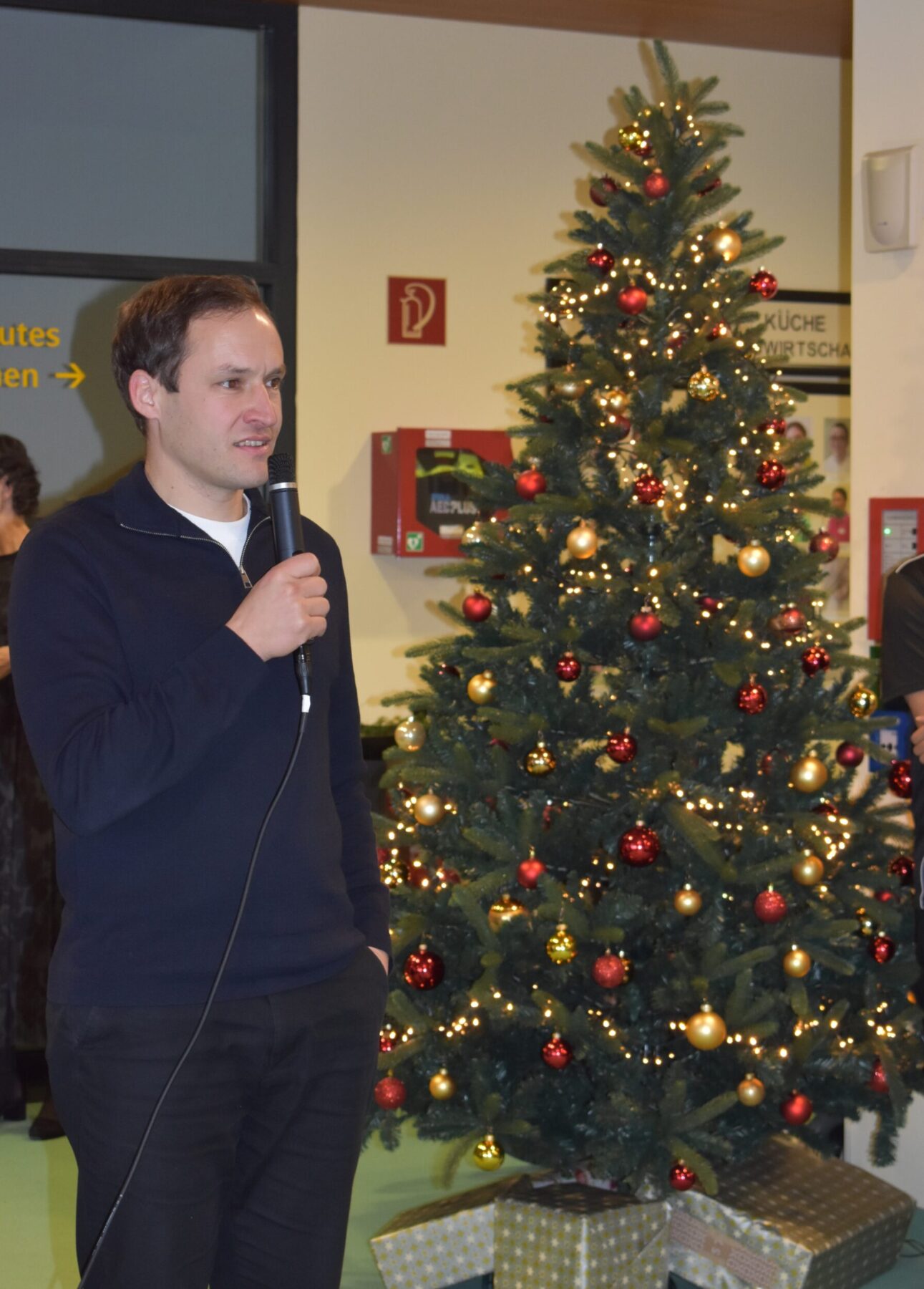 Am 17. Dezember fand die Weihnachtsfeier für unsere Bewohner:innen statt. Die Cafeteria im Erdgeschoss war mit viel Liebe zum Detail festlich dekoriert und bot den passenden Rahmen für diesen besonderen Nachmittag. Herzlich begrüßt wurden die Gäste von unserer Heimleiterin Katja Menzel und ihrer Stellvertreterin Sonja Rückl. Auch Bürgermeister Klaus Sohm richtete persönliche Worte an die Anwesenden. Der Nachmittag begann in gemütlicher Atmosphäre mit einem reichhaltigen Kuchenbuffet, bevor unsere hauseigene Küche am Abend ein hochwertiges und festliches Weihnachtsmenü servierte.