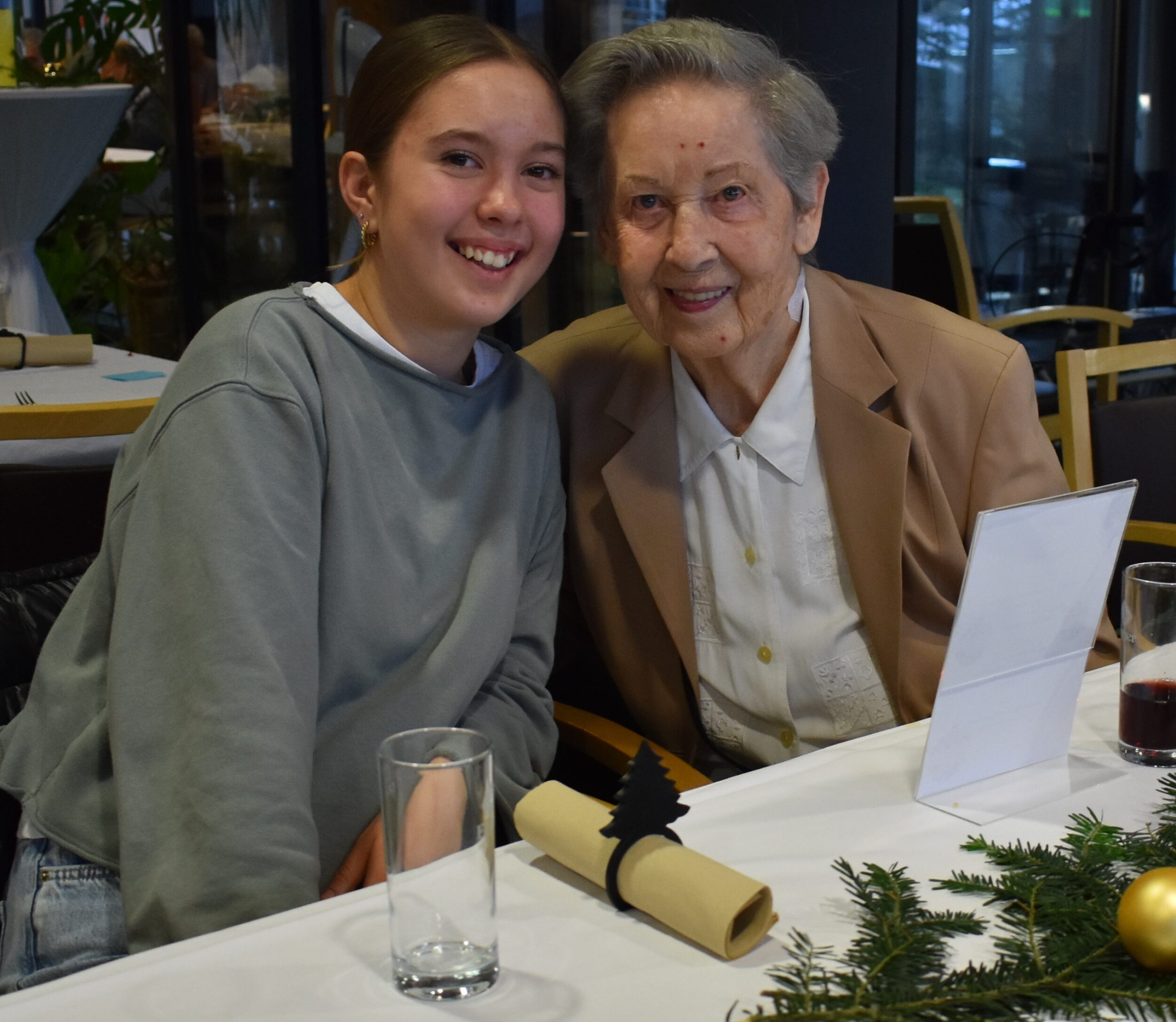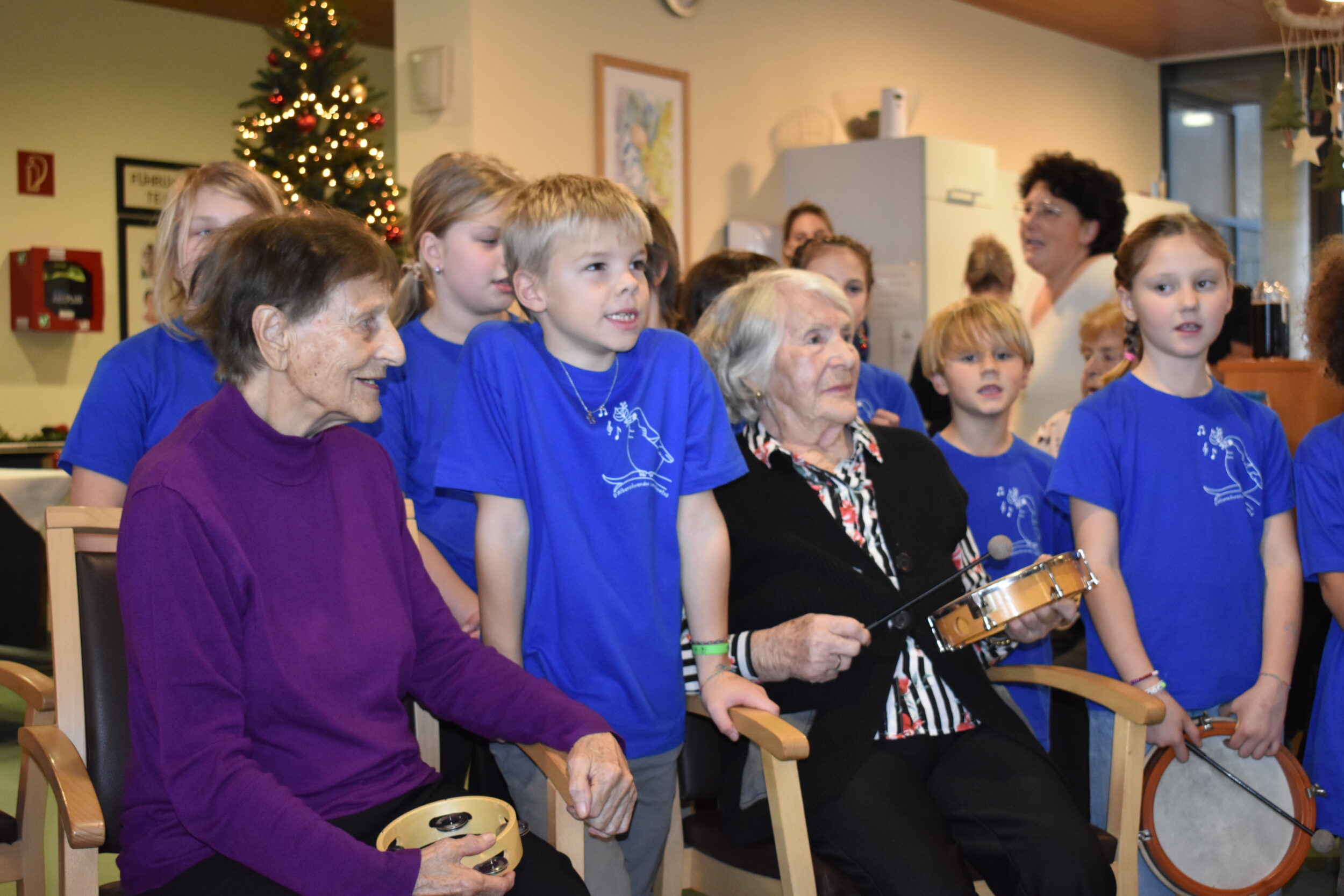 Musikalisch wurde die Feier stimmungsvoll begleitet: Die Gruppe „Spätzünder“ präsentierte klassische Weihnachtslieder und lud zum Mitsingen ein. Für besonders berührende Augenblicke sorgte die Klarinettengruppe unter der Leitung von Gabi Bereuter. Der Kinderchor „Leandospatzo“ sorgte für einen ganz besonderen Moment: Beim gemeinsamen Singen und Musizieren der Kinder mit unseren Bewohner:innen entstand ein herzliches Miteinander, das im Vorfeld unter der engagierten Leitung von Ramona Dür intensiv geprobt wurde. Diese musikalischen Begegnungen schufen eine heitere und lebendige Atmosphäre, die viele zum Austausch und Verweilen einlud.