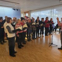 Jeden zweiten Mittwoch im Monat öffnet das besondere Café seine Pforten. Erst werden die SeniorInnen in der Cafeteria mit Kaffee und Kuchen verwöhnt, etwa eine halbe Stunde später beginnt das Programm im Sitzkreis. Die Gruppe wird abwechselnd von Anita Ohneberg oder Uta van Daele-Schörpf geleitet. Neben den BewohnerInnen des Sozialzentrums können auch SeniorInnen von außerhalb das Angebot nutzen. Insgesamt nehmen stets an die 30 Personen teil. Der Altersdurchschnitt liegt bei 75 Jahren, doch selbst 95-Jährige waren schon mit von der Partie. Die Verantwortlichen des Sozialzentrums wissen im Vornhinein, welche Themen behandelt und welche Übungen gemacht werden – dementsprechend informieren sie zielgerichtet die BewohnerInnen, die daran Interesse haben und mit dem Geplanten weder unter- noch überfordert sind.