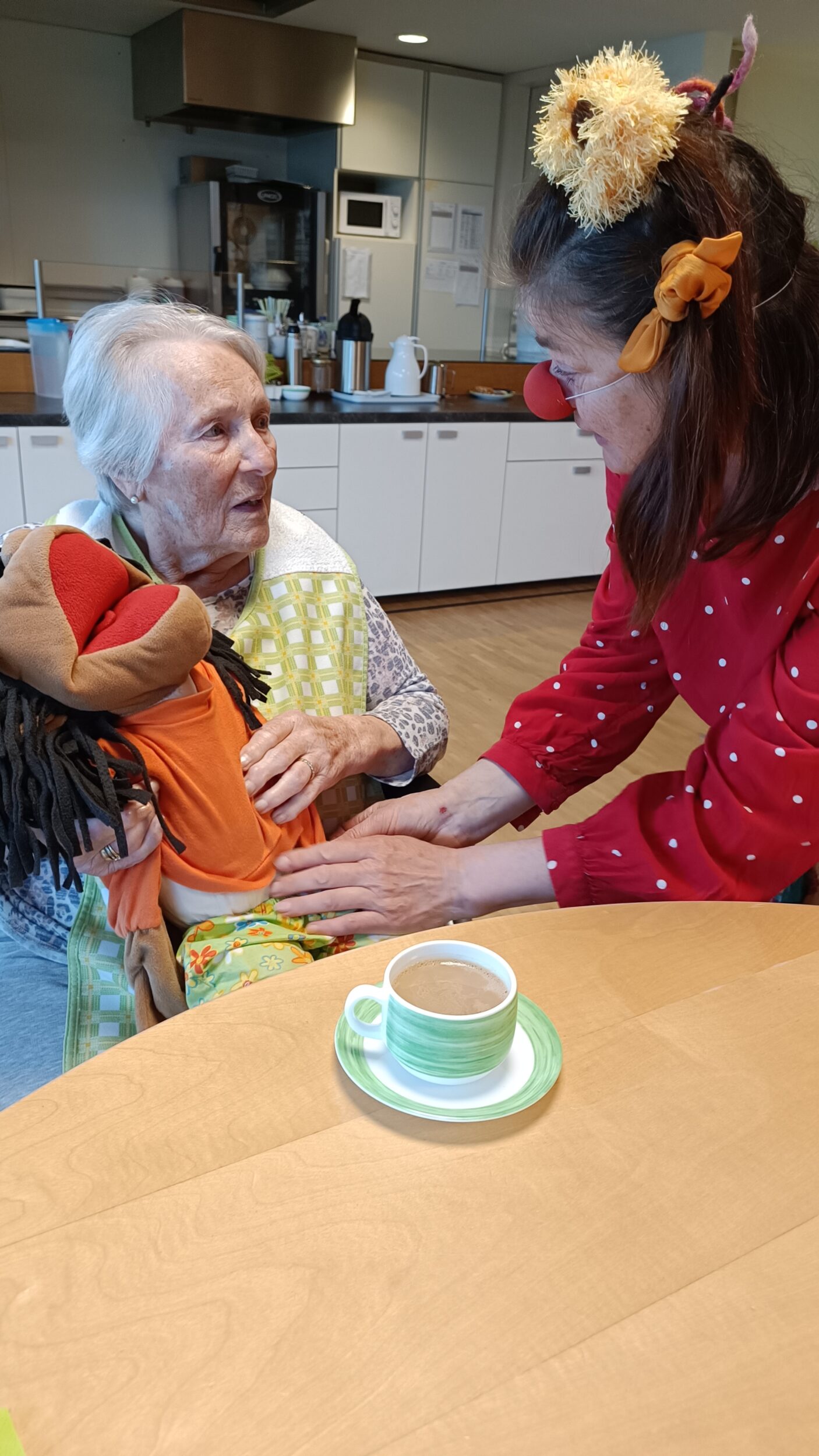 Durch den Besuch der Gabrielle- ClinikClown zieht Abwechslung und Fröhlichkeit ein, es gibt für die Bewohner:innen eine Gelegenheit, aktiv am Leben teilzunehmen.