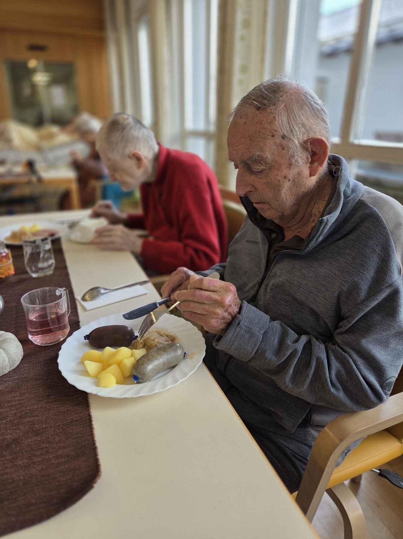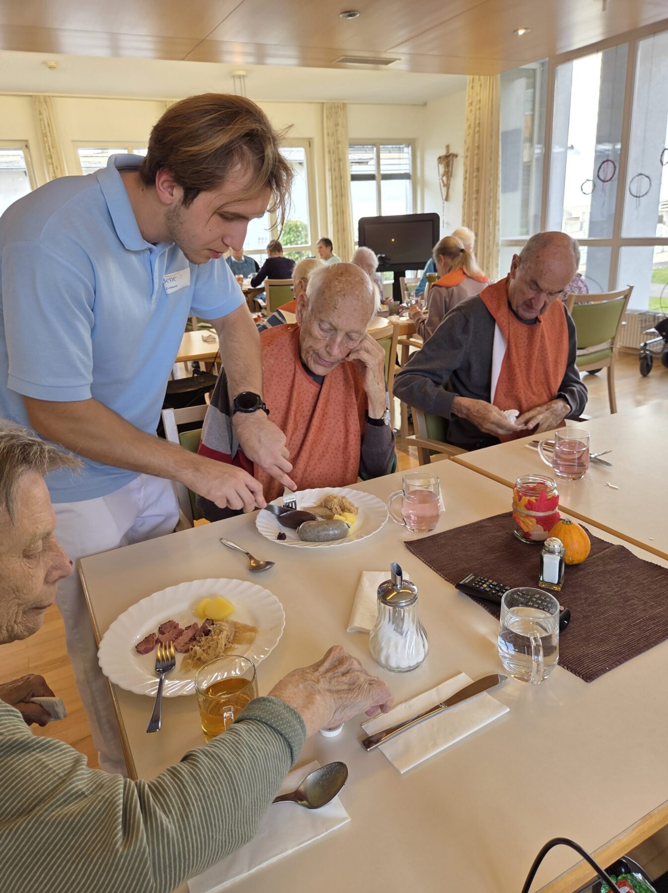 In unserem Pflegeheim werden immer wieder besondere Mittagsmahlzeiten angeboten. Besonders beliebt war auch dieses Jahr die Schlachtpartie, bei der wir leckere Blut- und Leberwürste, herzhaftes Kesselfleisch und zartes Kaiserfleisch servierten. Dazu gab es Salzkartoffeln und hausgemachtes Sauerkraut – eine Kombination, die in unserer Region seit jeher geschätzt wird.