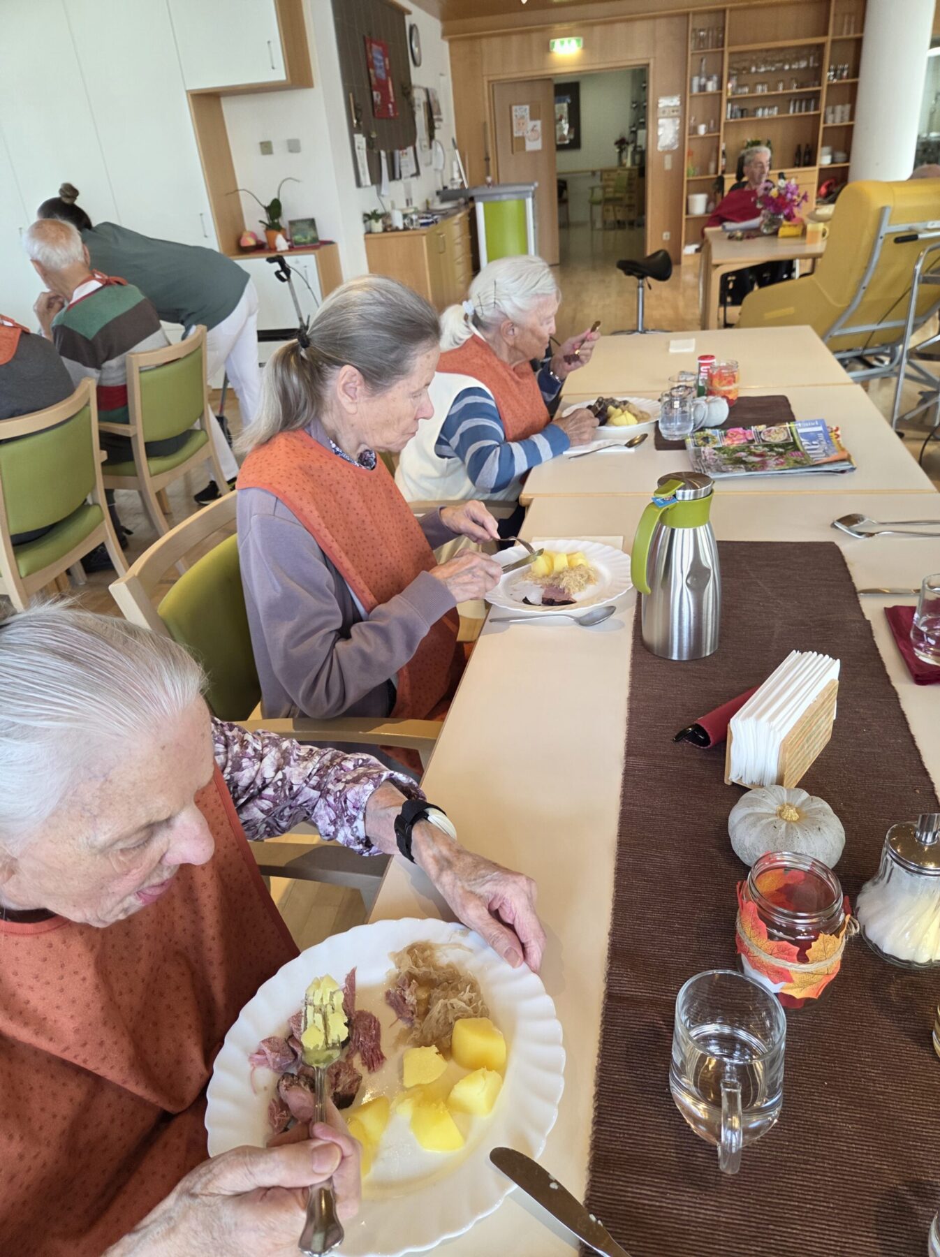 Die Bewohner und Bewohnerinnen freuten sich schon Tage vorher auf dieses besondere Essen und genossen die Mahlzeit in vollen Zügen. Es war nicht nur ein kulinarisches Erlebnis, sondern auch eine Gelegenheit die traditionelle Küche zu erleben. So wurde das Mittagessen zu einem echten Highlight des Tages!