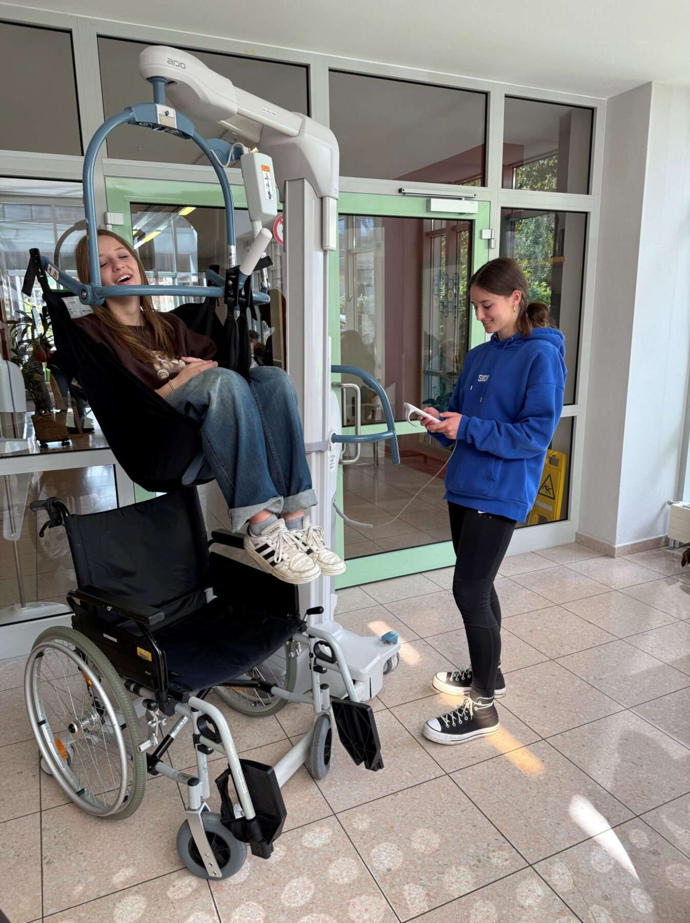 Darüber hinaus konnten die Jugendlichen moderne Hilfsmittel aus der Pflegepraxis wie den „Care Table“ oder den „Maxi Move“ selbst ausprobieren – ein spannender und interaktiver Zugang zu den vielfältigen Aufgaben und Möglichkeiten in der Pflege.