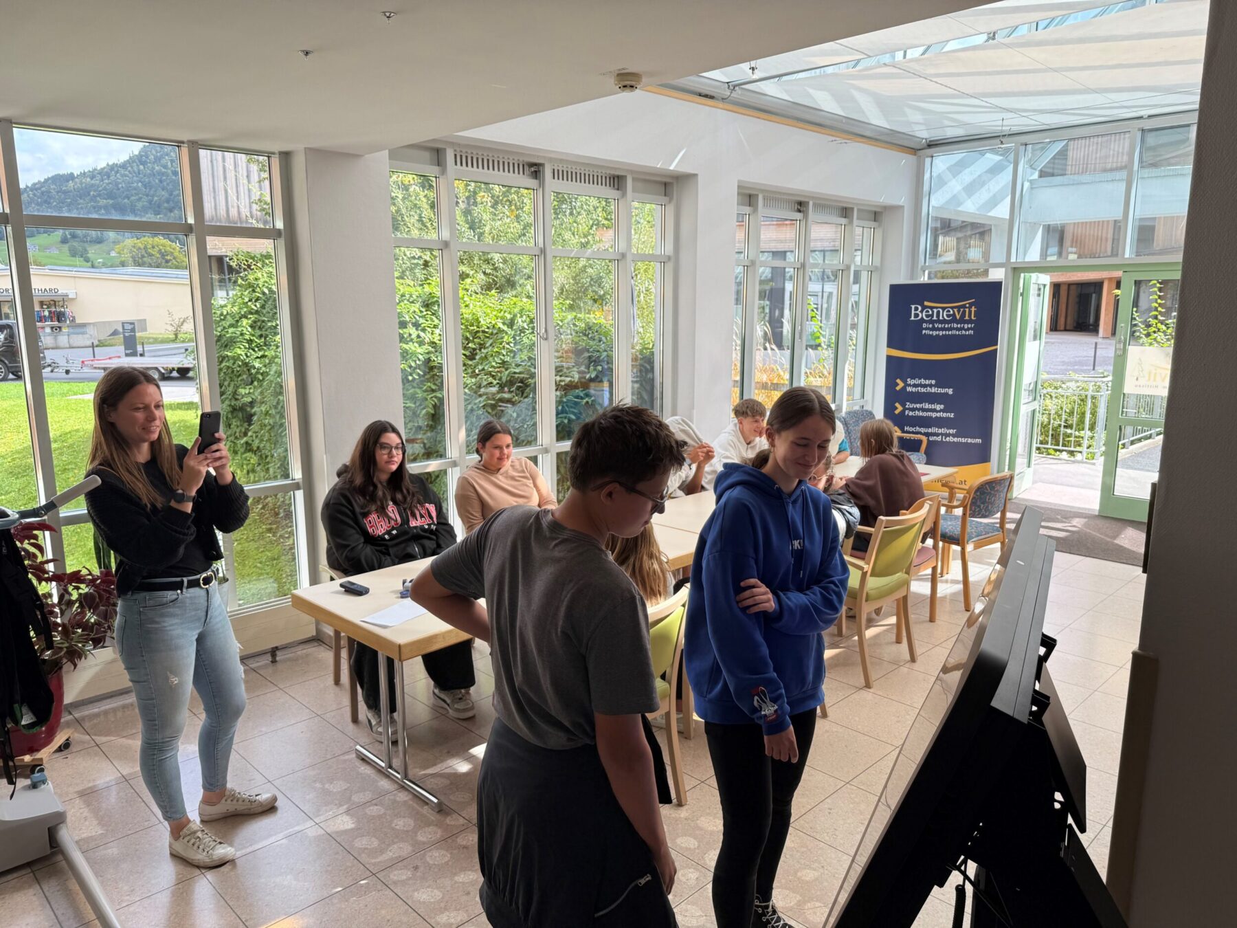 Im Rahmen ihrer Berufsorientierung besuchten uns kürzlich Schüler:innen der Polytechnischen Schule Hittisau. Bei einer gemeinsamen Hausführung konnten sie einen umfassenden Einblick in den Alltag unseres Pflegeheims gewinnen.