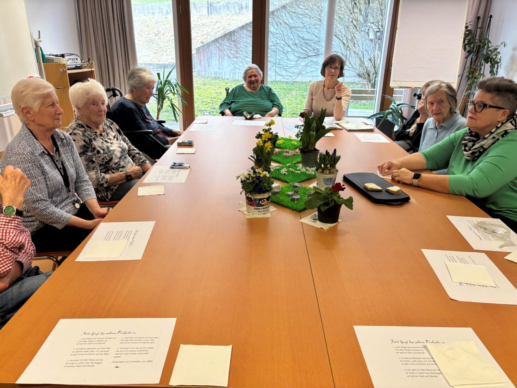 „Mit viel Schwung ins Frühjahr“ war das Thema des Erzählcafés im Monat März im Haus Klostertal. Die teilnehmenden Bewohnerinnen und Bewohner hatten sichtlich viel Freude an diesem besonderen Nachmittag.