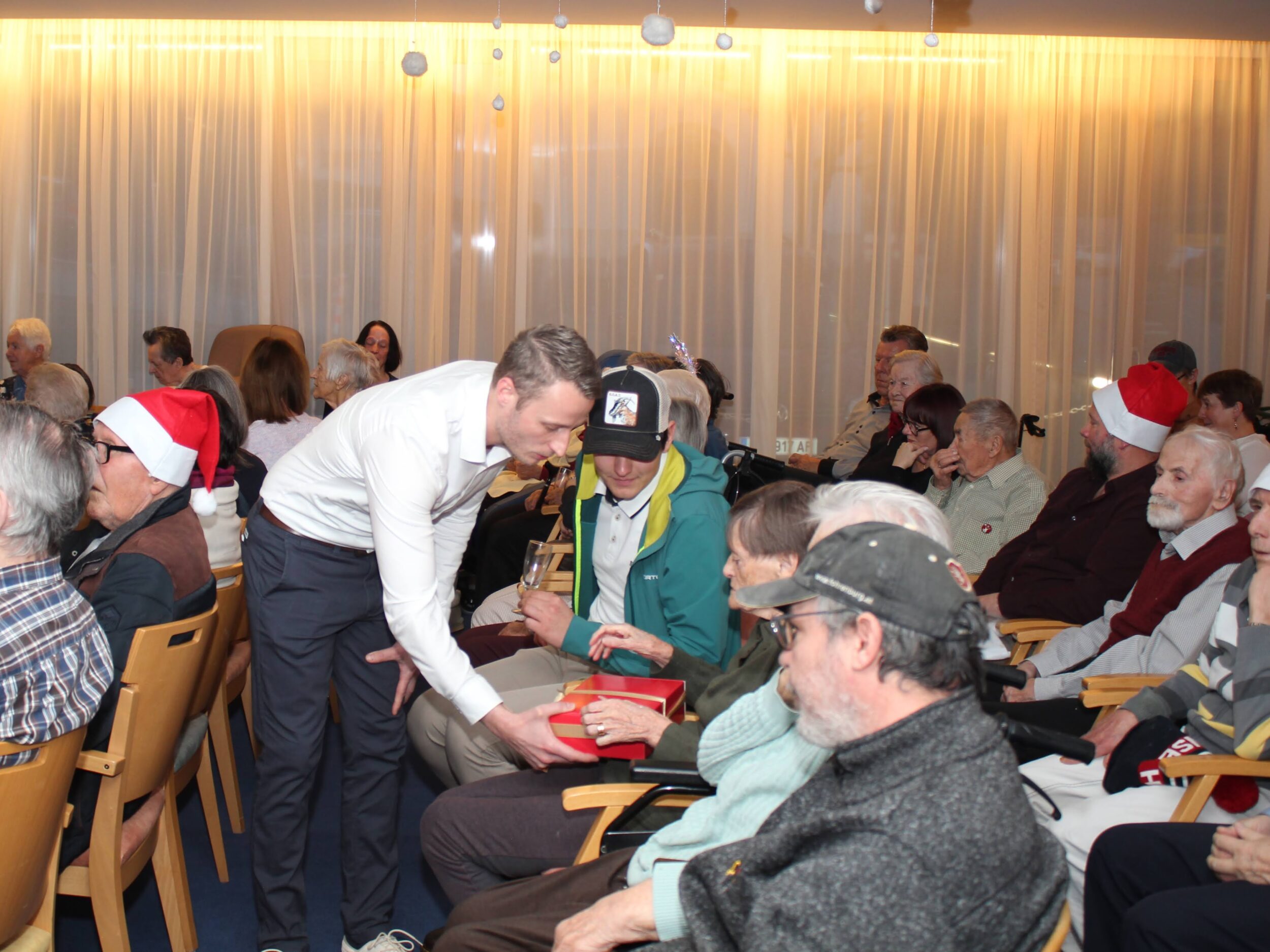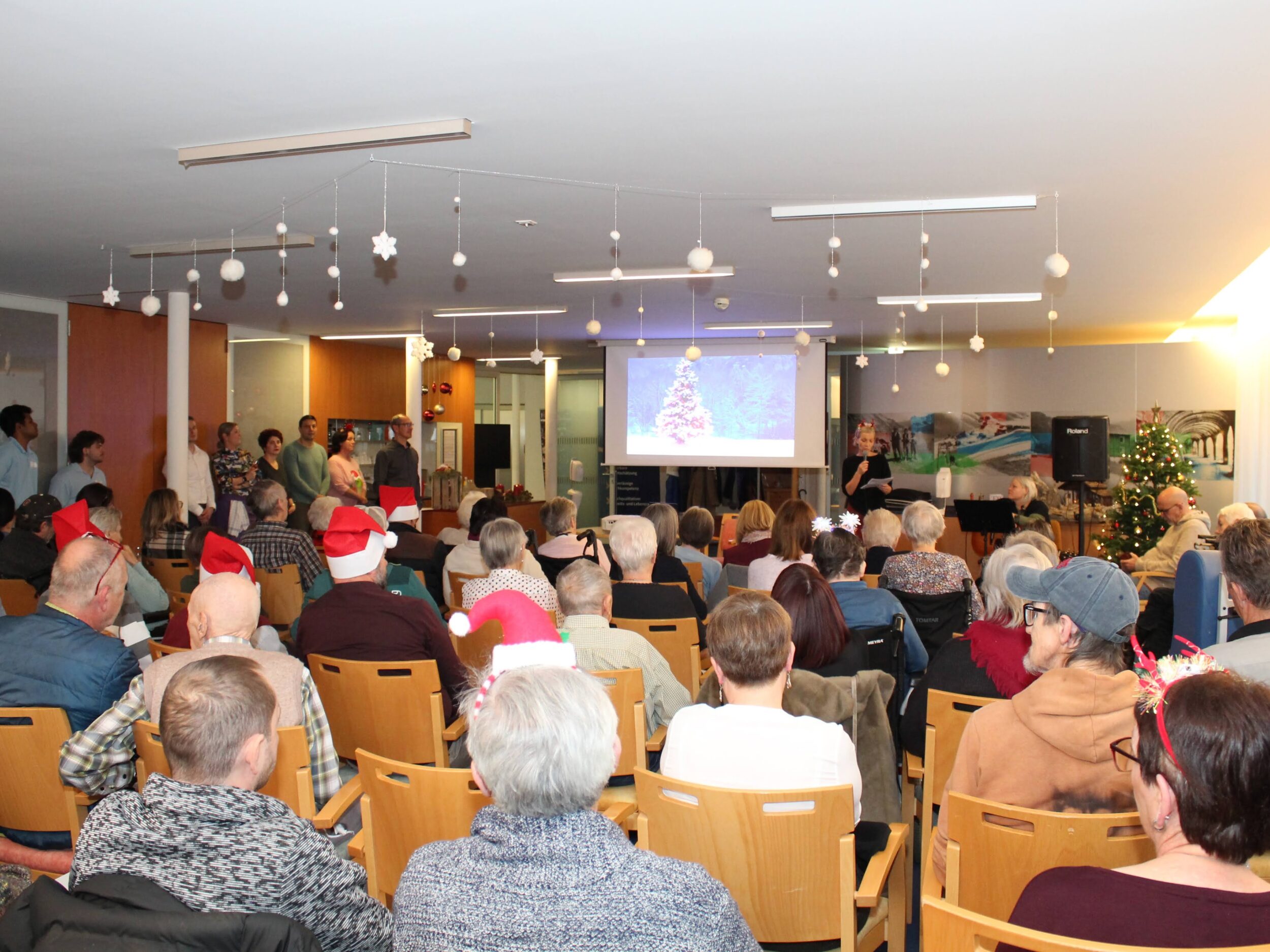 Am 18. Dezember feierten wir in festlichem Ambiente unsere diesjährige Weihnachtsfeier gemeinsam mit unseren Bewohnerinnen und Bewohnern. Heimleiter Dietmar Durig begrüßte alle Gäste herzlich im Foyer und freute sich besonders darüber, dass zahlreiche Angehörige der Einladung gefolgt waren.