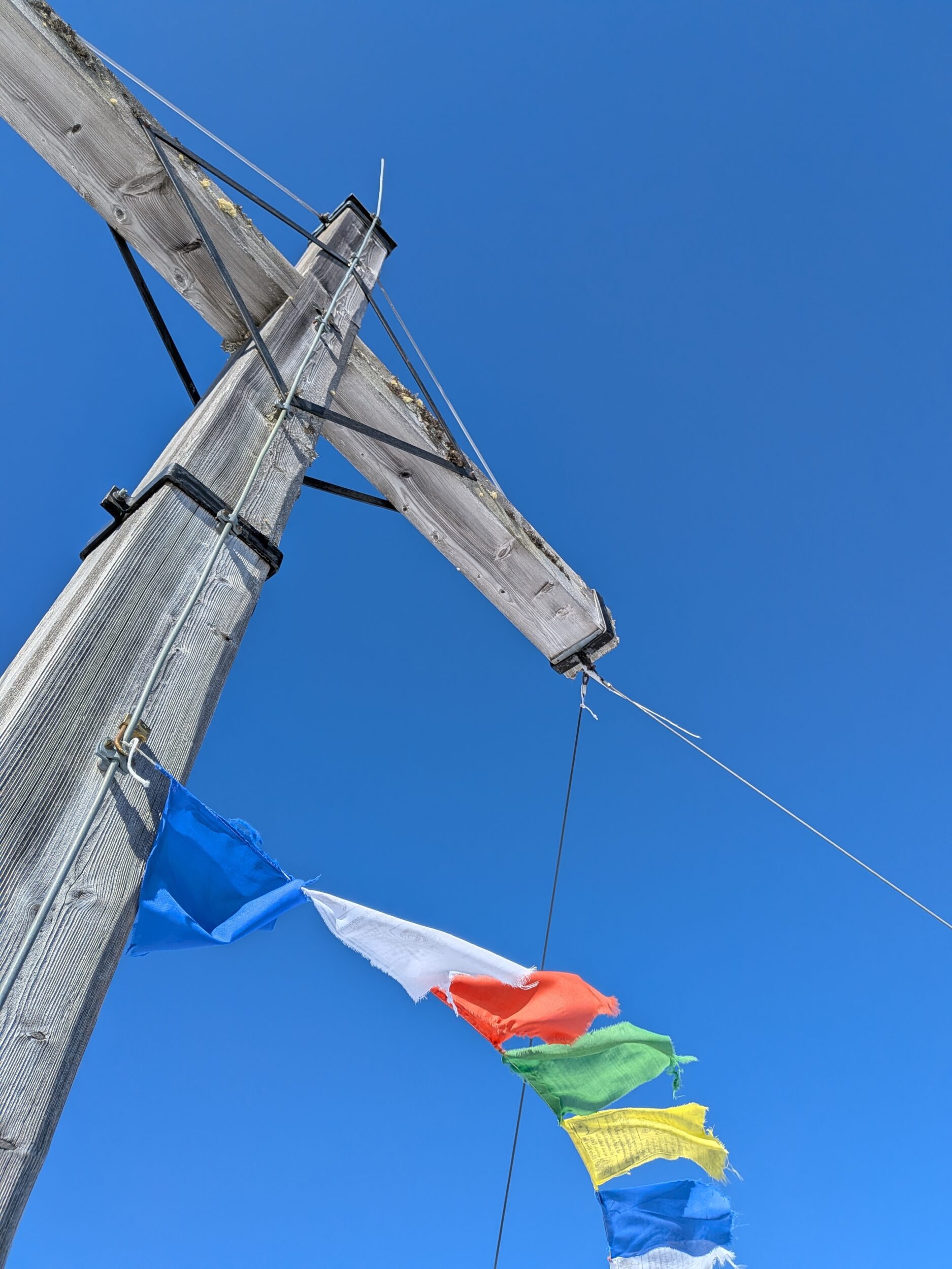 Am Gipfelkreuz Muttjöchle auf 2.074 m genossen wir die traumhafte Aussicht in die umliegende Bergwelt und in die Täler und natürlich ein kleines Gipfelschnäpsle.