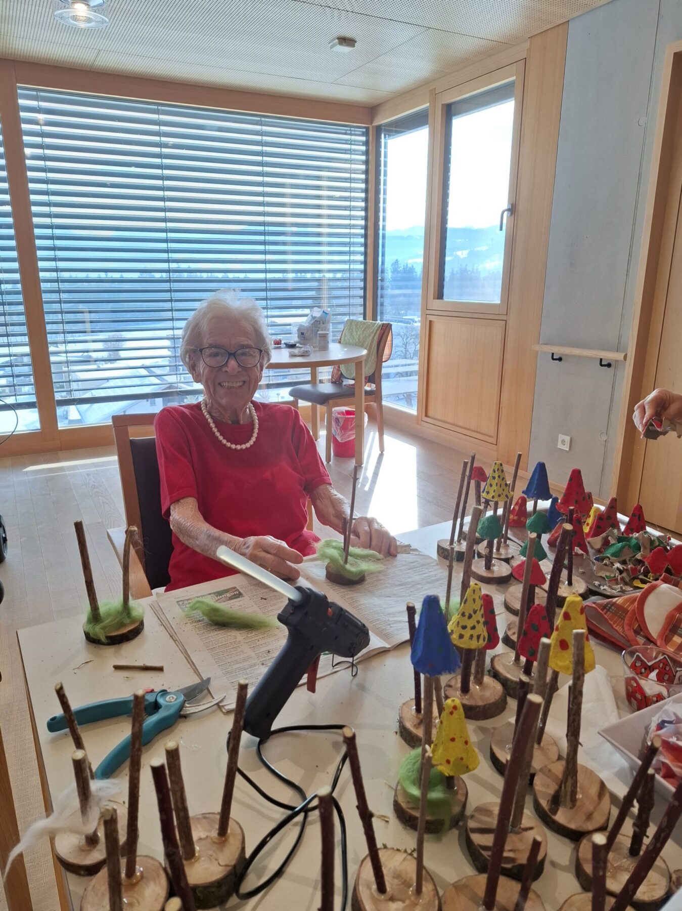 Heute hat Dagmar mit großem Engagement gemeinsam mit unseren Bewohner:innen Faschingsdekorationen gestaltet. Der Gemeinschaftsraum war erfüllt von fröhlichem Lachen und lebhaften Gesprächen, während bunte Pilze entstanden. Dagmar brachte zahlreiche kreative Ideen ein und unterstützte die Bewohner:innen dabei, ihre eigenen einzigartigen Dekorationen zu kreieren. Die Tische waren mit Bastelmaterialien wie buntem Papier, Kleber und Scheren bedeckt, und die Atmosphäre war von Vorfreude auf den bevorstehenden Fasching geprägt. Die Bewohner:innen genossen es, ihre künstlerischen Fähigkeiten zu entfalten und gemeinsam an einem Projekt zu arbeiten. Dagmars Geduld und ihr freundliches Wesen trugen dazu bei, dass sich alle wohlfühlten und mit Begeisterung bei der Sache waren. Am Ende des Tages waren alle stolz auf die entstandenen Kunstwerke, die nun die Räume schmücken.