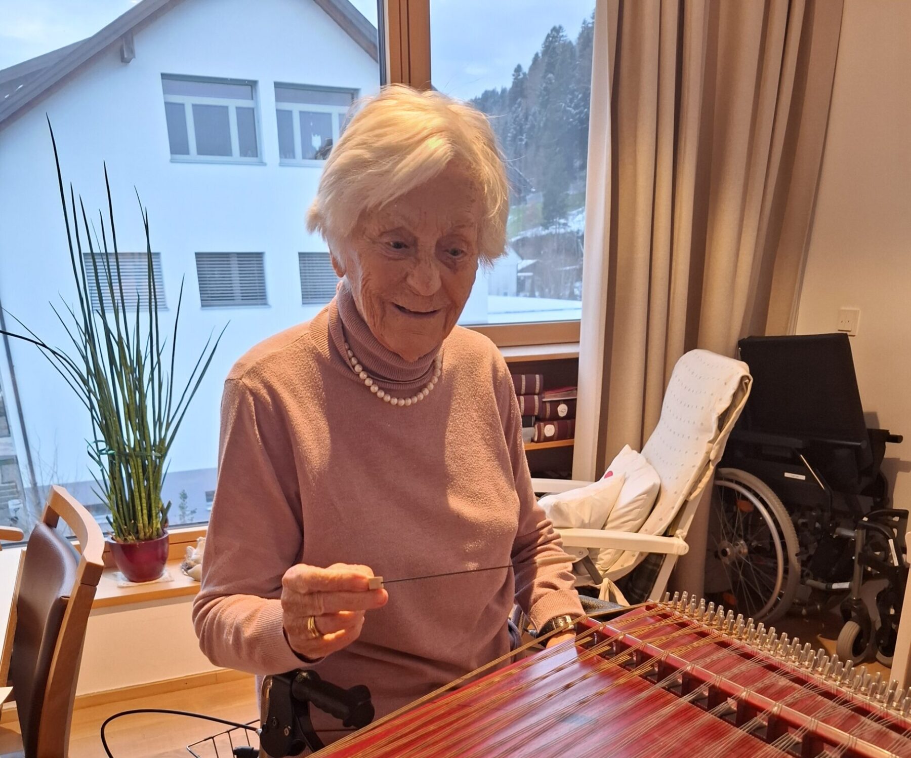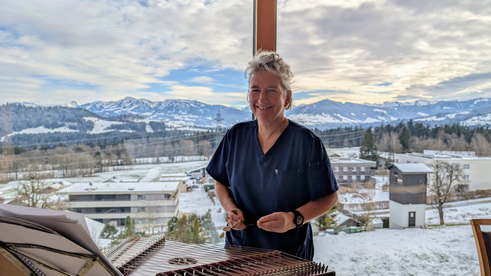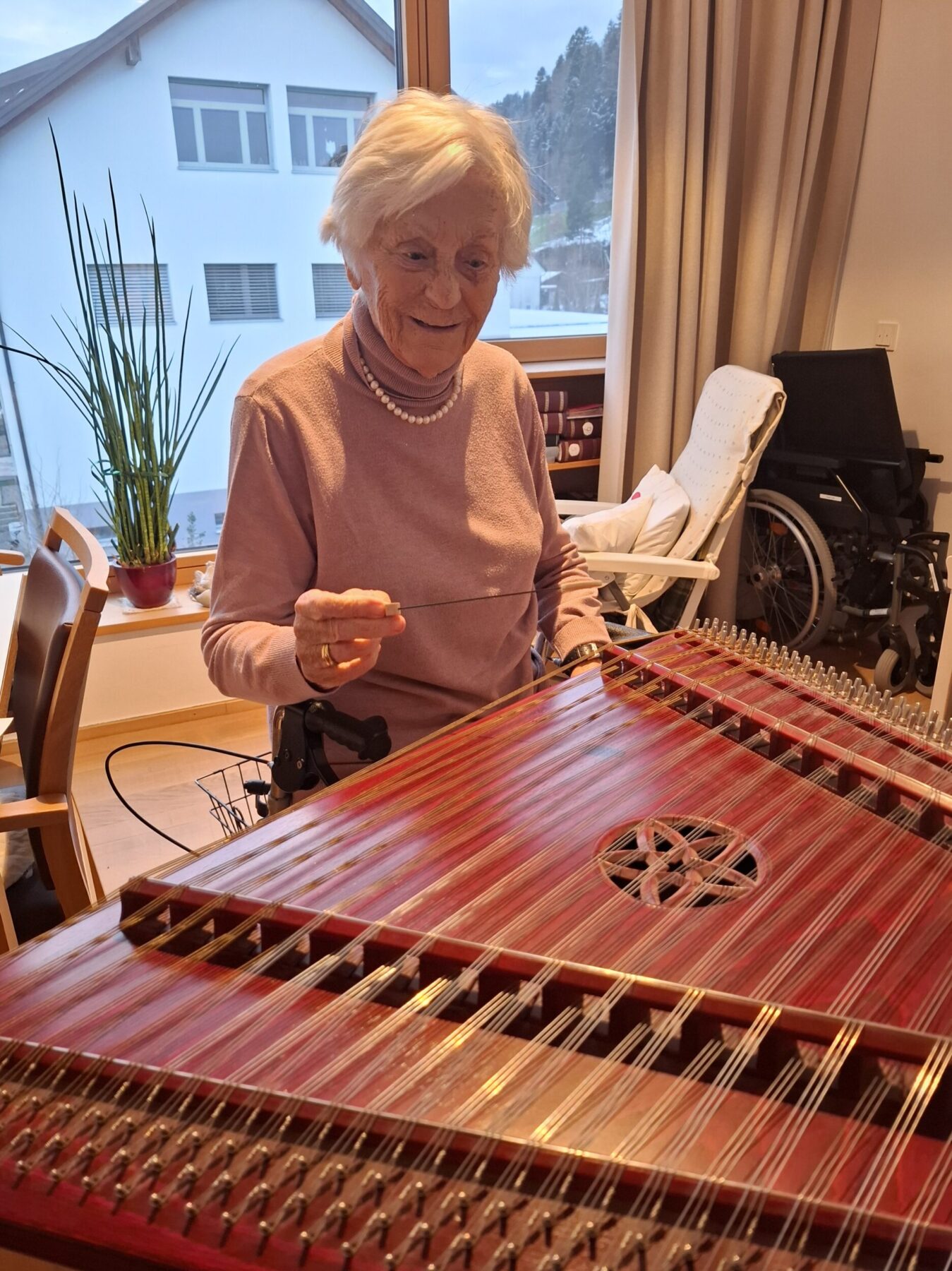 Am Sonntag brachte Dagmar ihr Hackbrett mit zur Arbeit, was für einige Überraschung und Freude sorgte. Die sanften Töne des Hackbretts erfüllten den Raum und zogen die Aufmerksamkeit der Bewohner:innen auf sich.