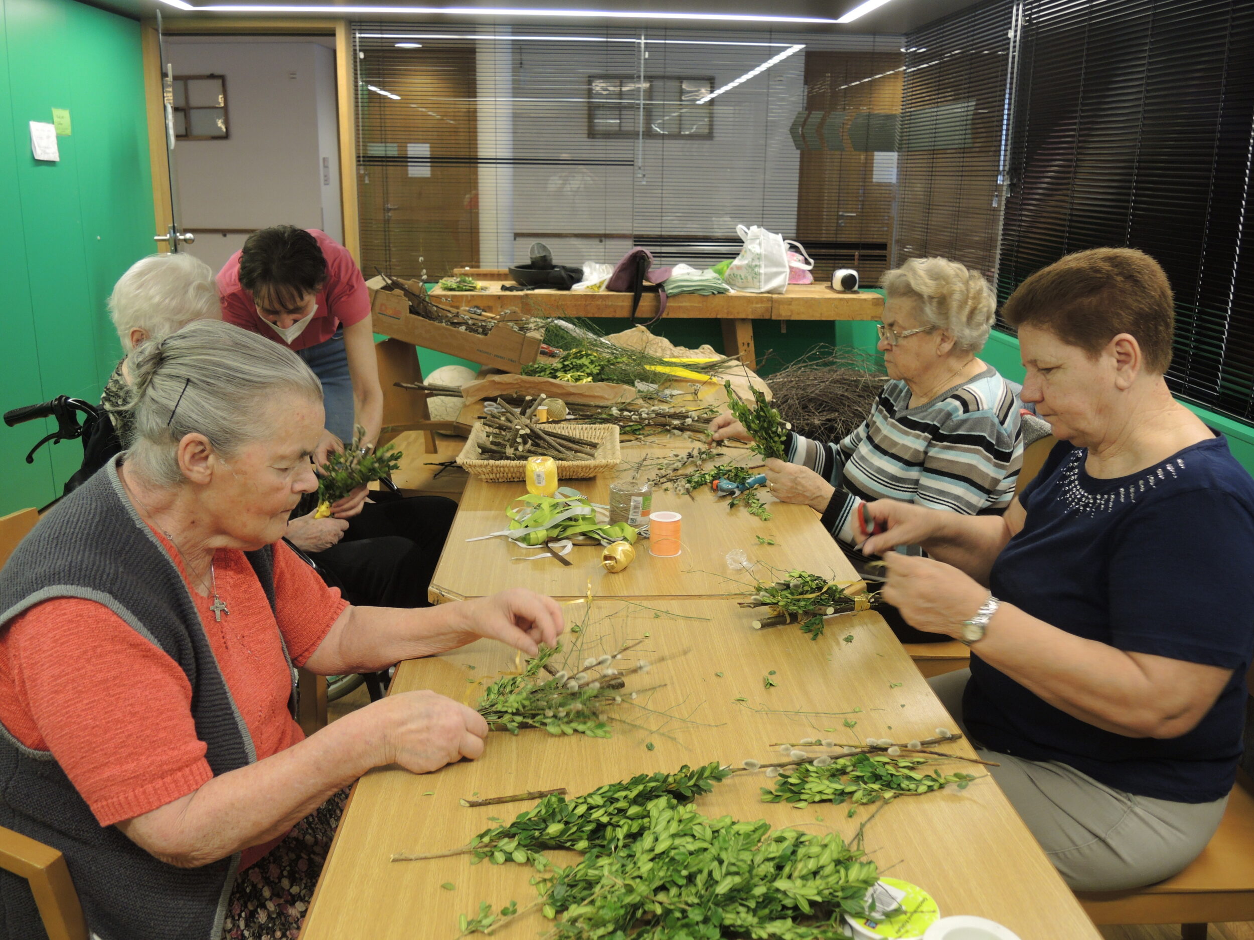 Mit viel Freude wurde am Mittwoch, 29.03.2023 im IAP die Palmbüsche für Palmsonntag gebunden. Die Betreuungsmitarbeiterinnen besorgten Palmzweige, Buchszweige, die Holzkreuze und halfen den Bewohner:innen beim Binden. Anschließend wurden die Palmbüsche mit Farbigen Bänder verziert. Wir bedanken uns bei allen fleißigen Helfern.