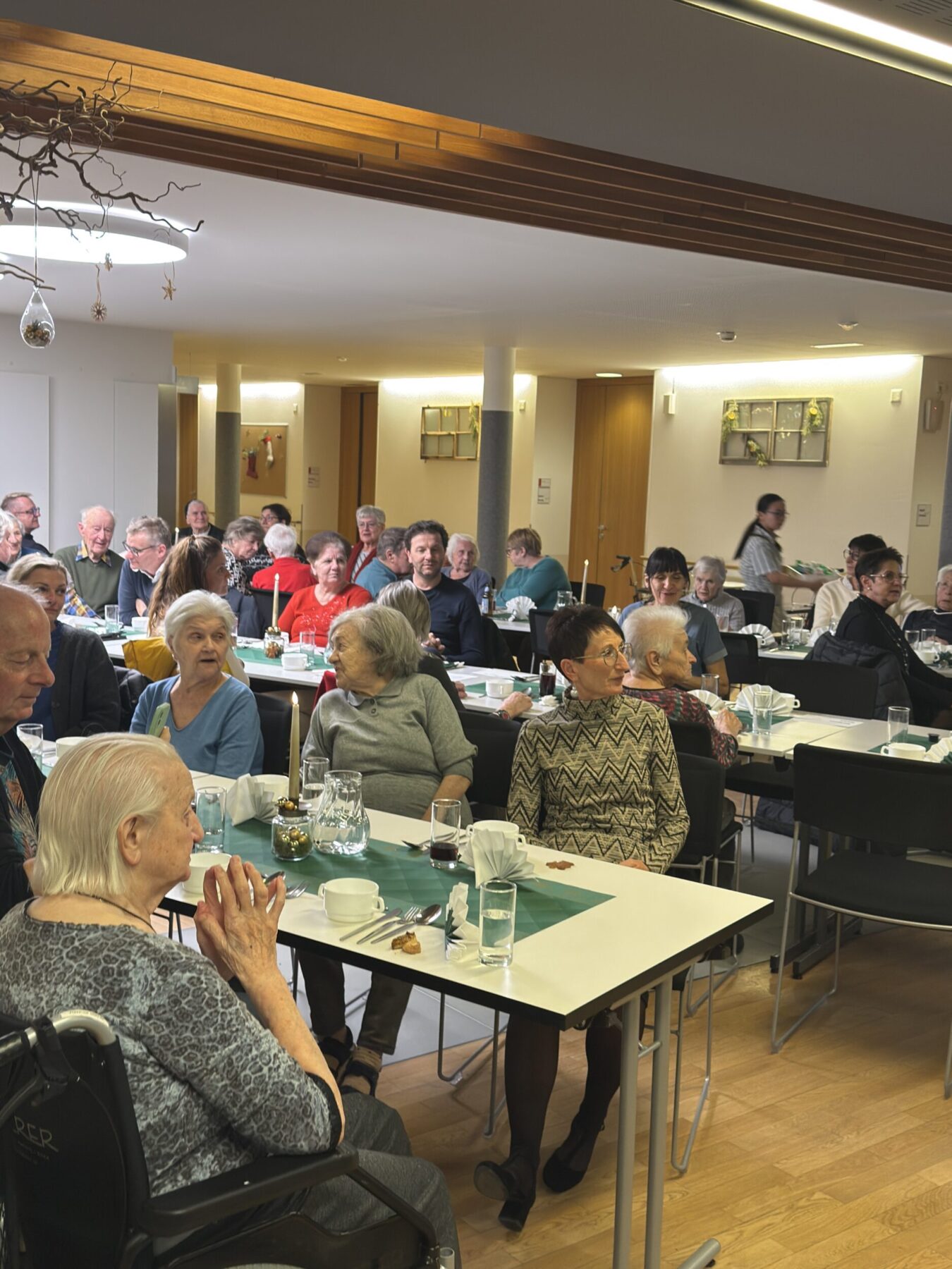 Dieses Jahr gestalteten wir unsere Weihnachtsfeier bewusst ein wenig anders und setzten auf Gemeinschaft „wie früher“. Nach einem gemütlichen Adventnachmittag mit selbstgemachten Keksen und Kaffee folgte ein traditionelles Abendessen, bei dem alle Speisen in Töpfen und auf Platten auf den Tisch gestellt wurden. Jede:r konnte sich selbst bedienen – unterstützt von Sitznachbarn und Team – und es entstand eine warme, familiäre Atmosphäre. Musikalisch begleitet wurden wir vom Klostertaler Bläserensemble –ein herzlichen Dankschön ihnen. Die positiven Rückmeldungen unserer Bewohner:innen und Angehörigen haben uns sehr gefreut.