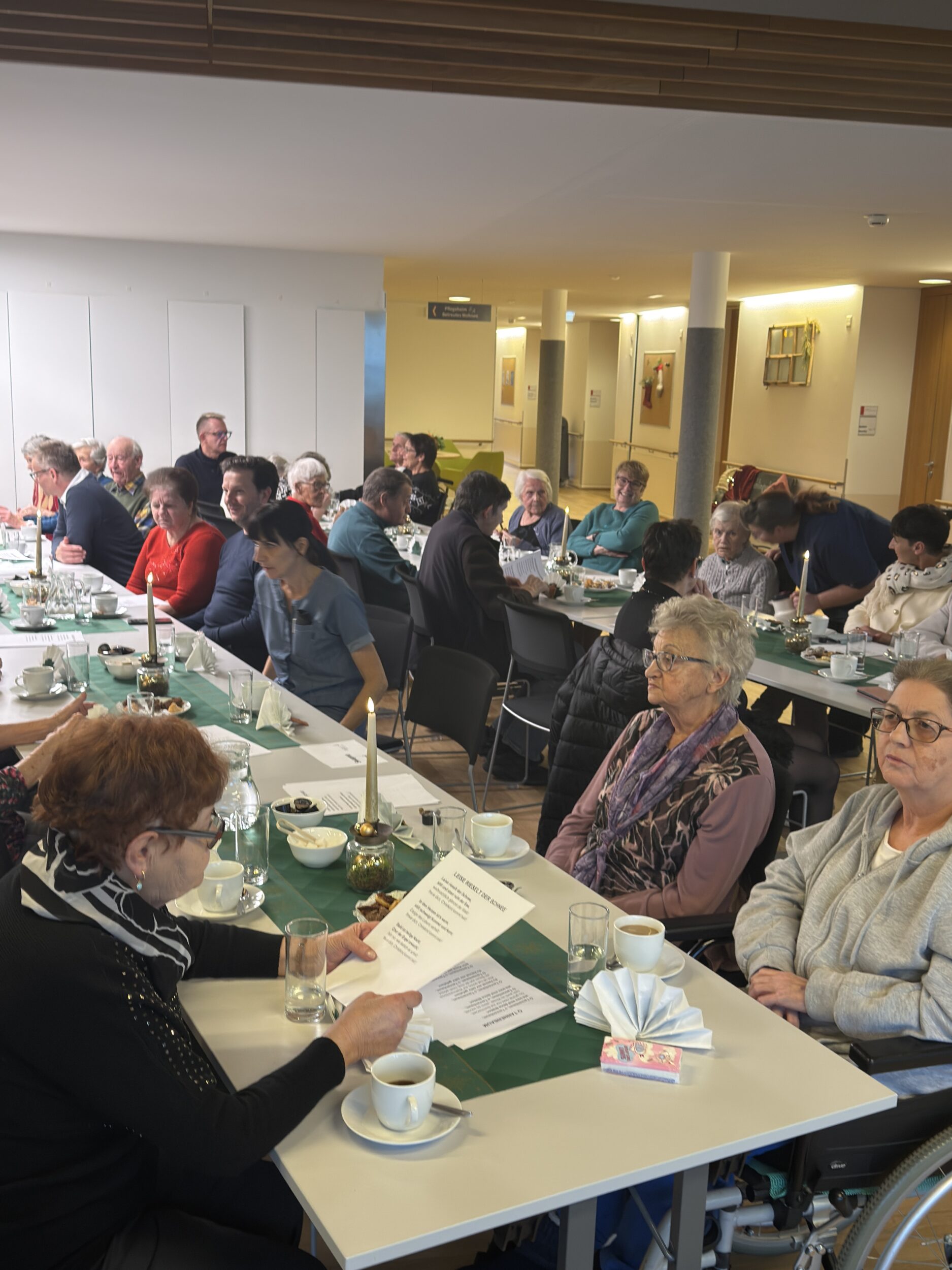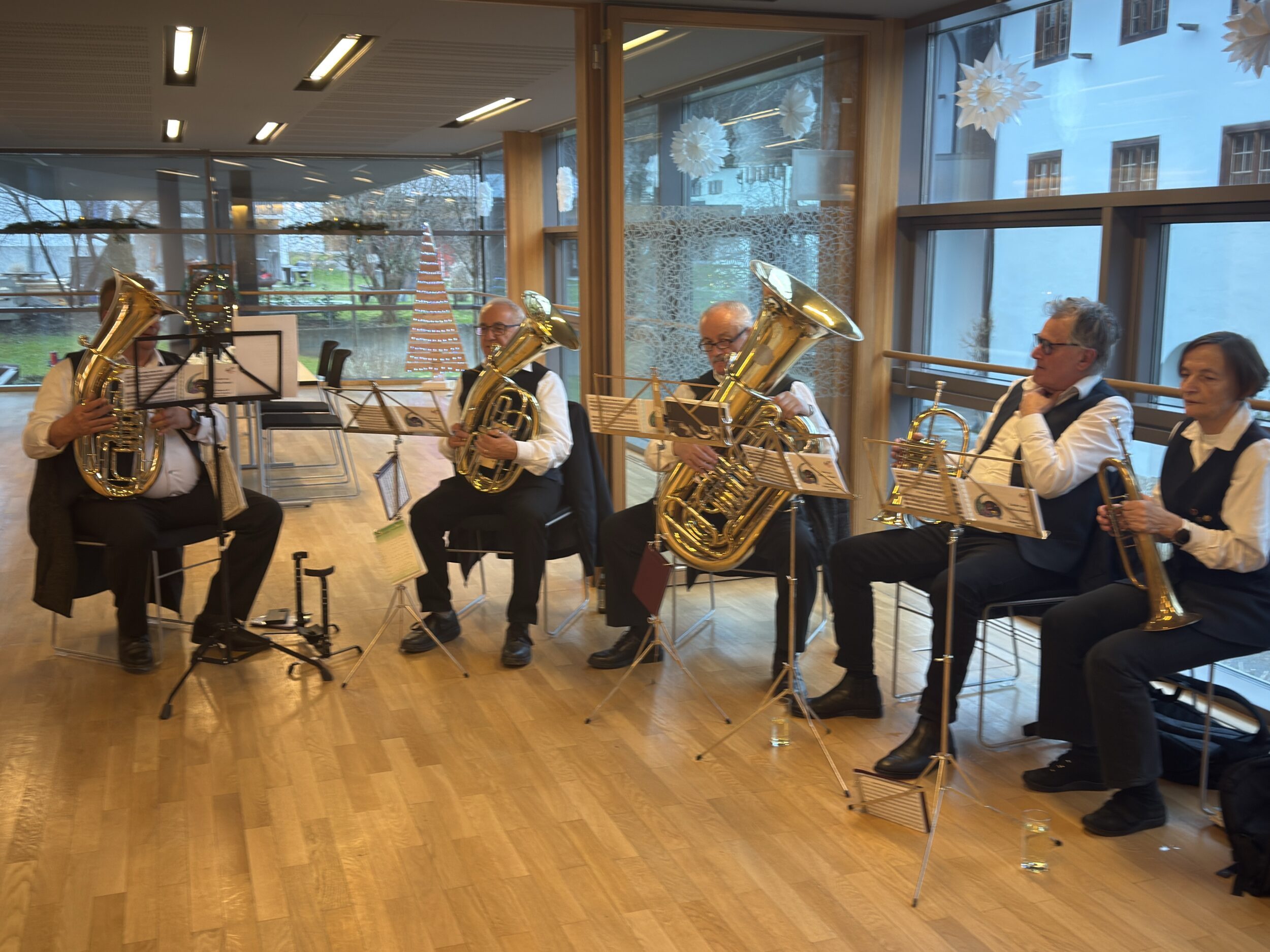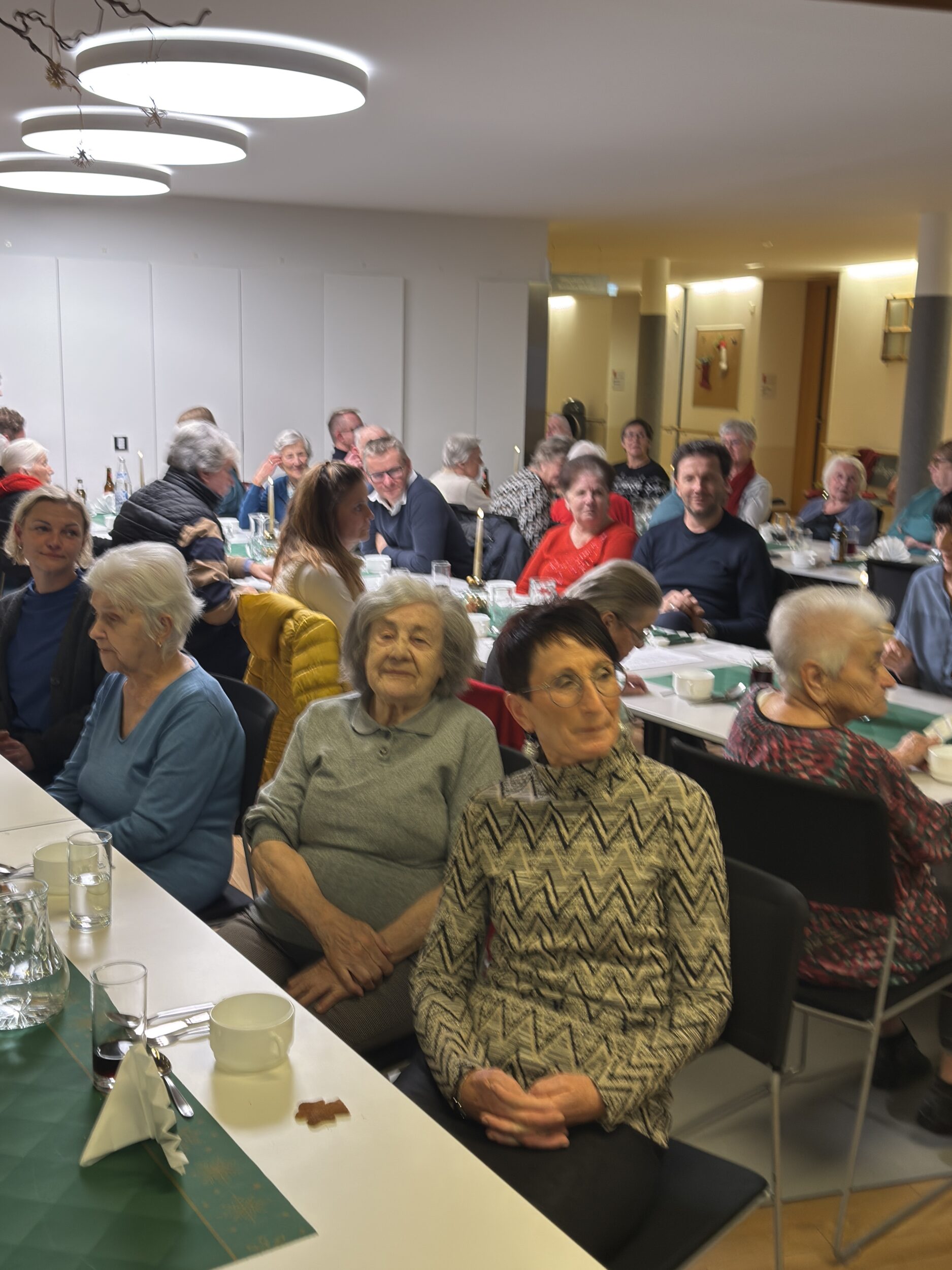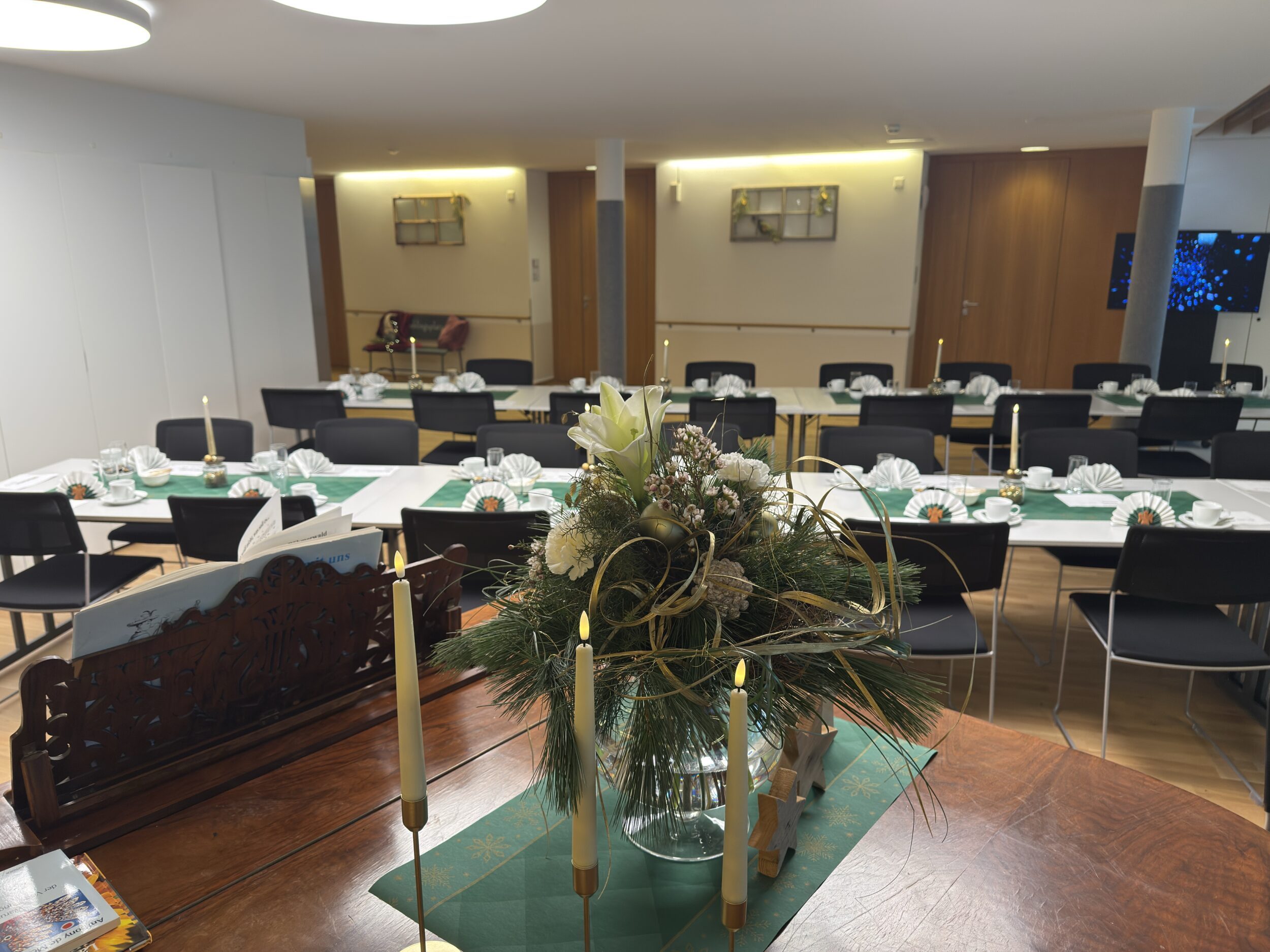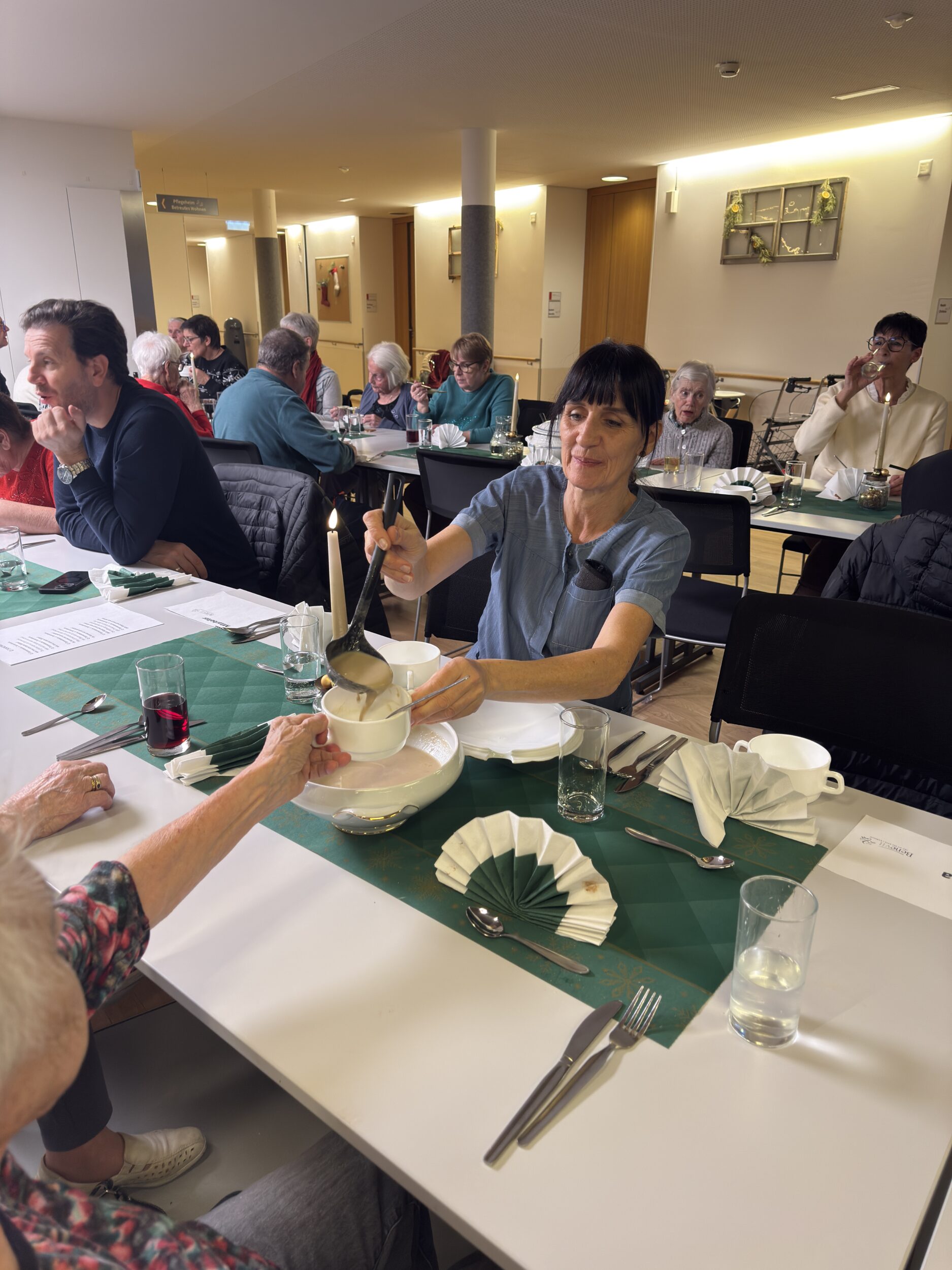 Dieses Jahr gestalteten wir unsere Weihnachtsfeier bewusst ein wenig anders und setzten auf Gemeinschaft „wie früher“. Nach einem gemütlichen Adventnachmittag mit selbstgemachten Keksen und Kaffee folgte ein traditionelles Abendessen, bei dem alle Speisen in Töpfen und auf Platten auf den Tisch gestellt wurden. Jede:r konnte sich selbst bedienen – unterstützt von Sitznachbarn und Team – und es entstand eine warme, familiäre Atmosphäre. Musikalisch begleitet wurden wir vom Klostertaler Bläserensemble –ein herzlichen Dankschön ihnen. Die positiven Rückmeldungen unserer Bewohner:innen und Angehörigen haben uns sehr gefreut.