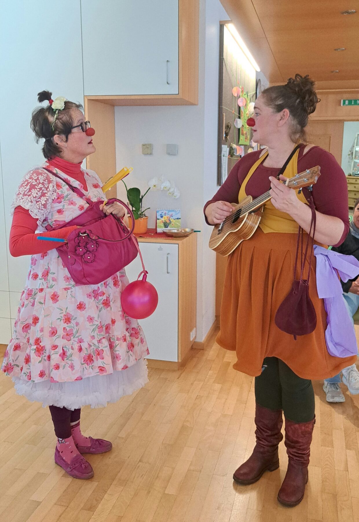Zum zweiten Mal sorgten zwei Begegnungsclowninnen für gute Laune im Pflegeheim Hittisau. Mit ihren bunten Kostümen, fröhlichen Liedern und lustigen Einlagen brachten sie die Bewohner:innen zum Lächeln. Dabei wurden alle aktiv eingebunden – sei es beim Singen, Klatschen oder mit kleinen, spielerischen Aktionen. Der Besuch war nicht nur unterhaltsam, sondern auch eine schöne Gelegenheit zur geistigen und emotionalen Aktivierung. Sowohl die Bewohner:innen als auch das Pflegepersonal freuten sich über die heitere Stunde, die den Alltag auflockerte und das Gemeinschaftsgefühl stärkte.