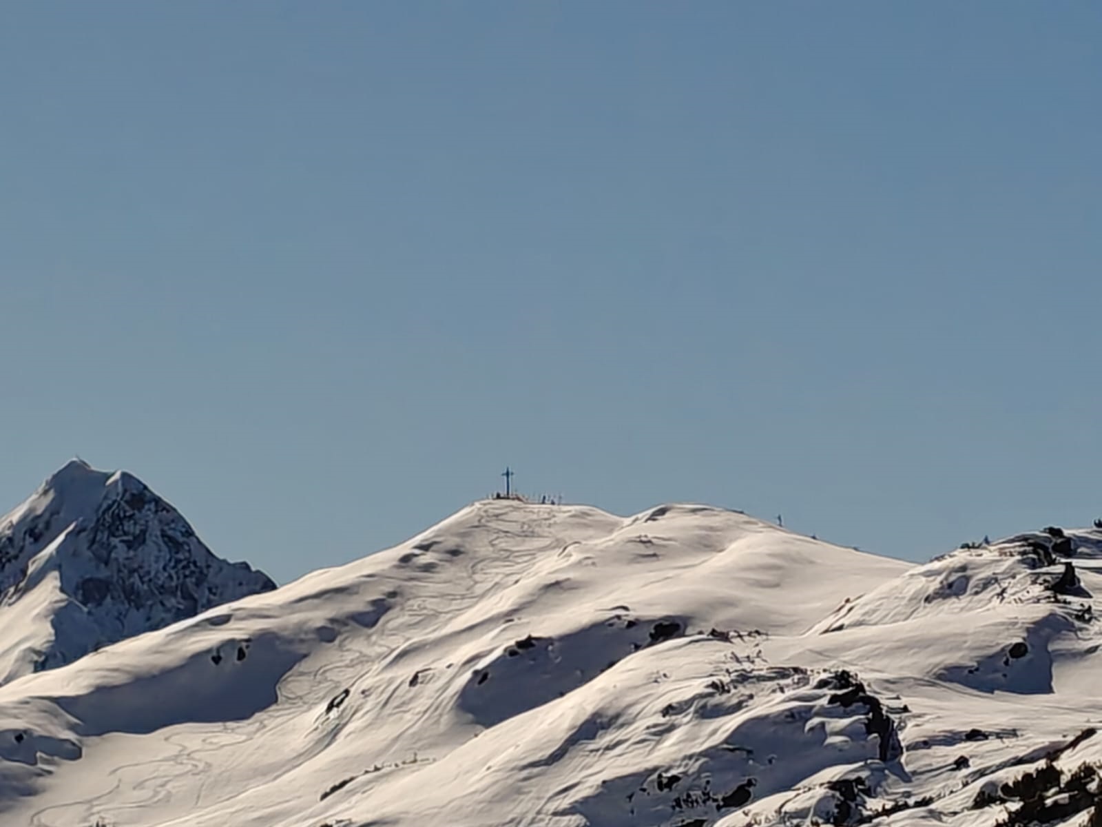 Der Weg zum Muttjöchle führt durch eine beeindruckende Winterkulisse. Schon nach den ersten Schritten blieb der Alltagsstress spürbar im Tal zurück. Durch das gleichmäßige Gehen durch die verschneite Landschaft, die Ruhe der winterlichen Bergwelt und die weiten Ausblicke konnten wir unsere Seelen so richtig baumeln lassen und Kraft tanken.