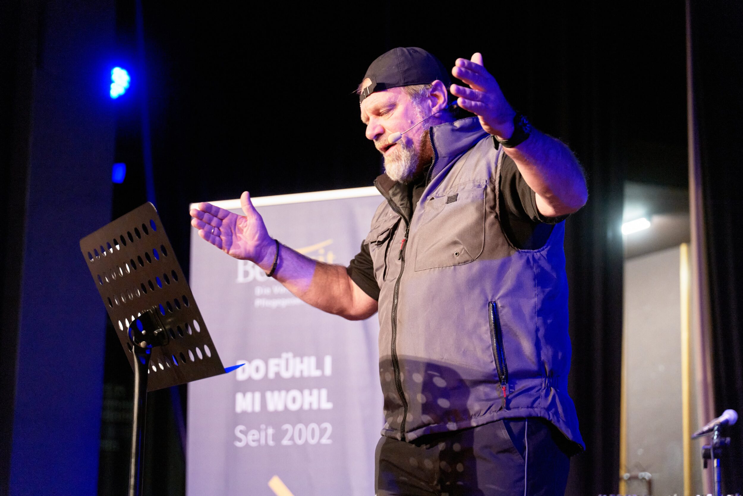 Für eine besondere Überraschung sorgte „Valle“ Valentin Sottopietra mit einem Kabarettauftritt, in dem er einen Undercover-Facility-Mitarbeiter in den BENEVIT-Einrichtungen mimte, was für viele Lacher sorgte.