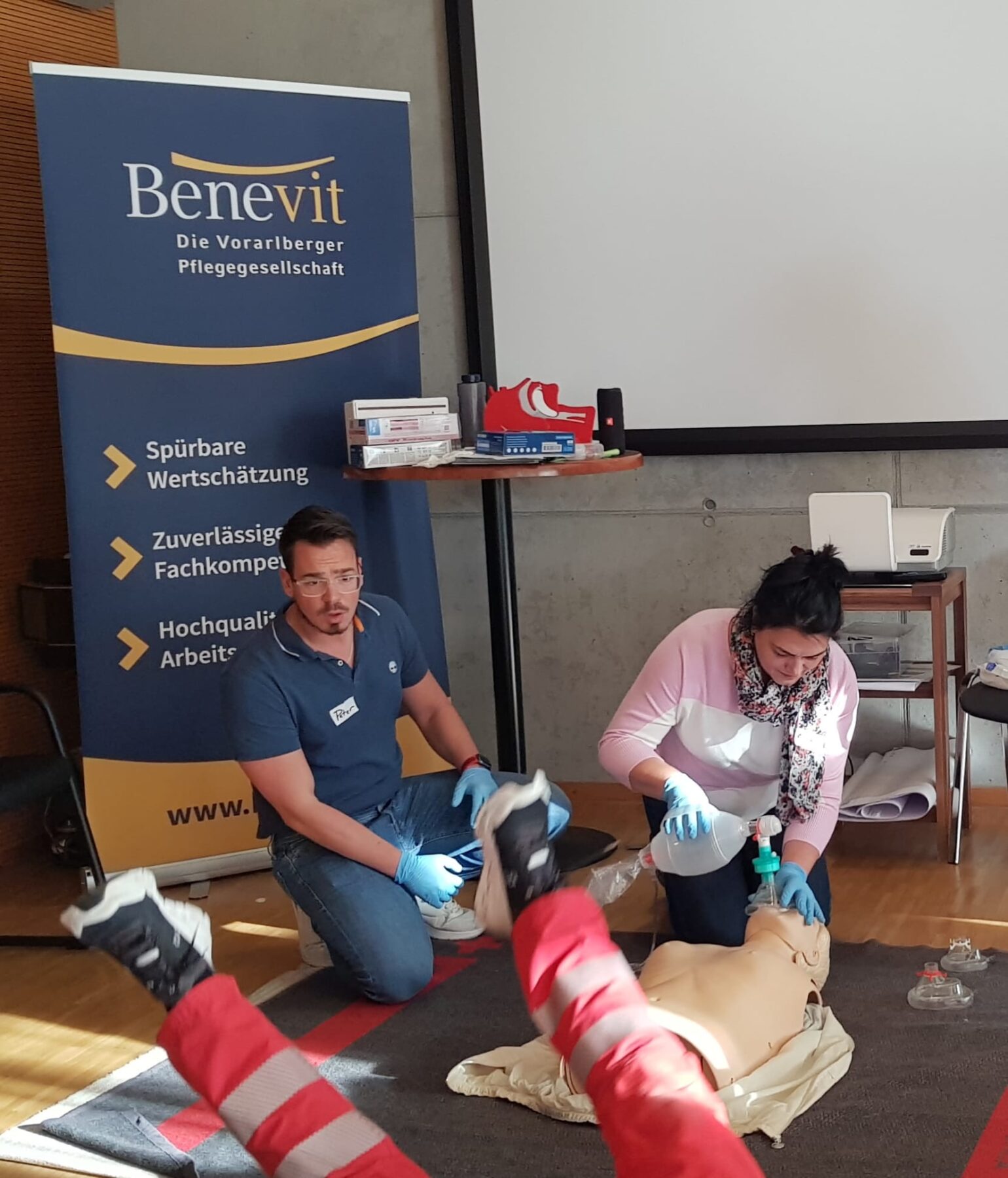 Unsere Mitarbeiterinnen und Mitarbeiter vom BENEVIT Sozialzentrum Weidach und BENEVIT Pflegeheim in Höchst/Fußach sowie BENEVIT Abt Pfanner-Haus/Langen haben einen 4-stündigen Erste-Hilfe-Auffrischungskurs im BENEVIT Sozialzentrum Weidach erfolgreich absolviert.