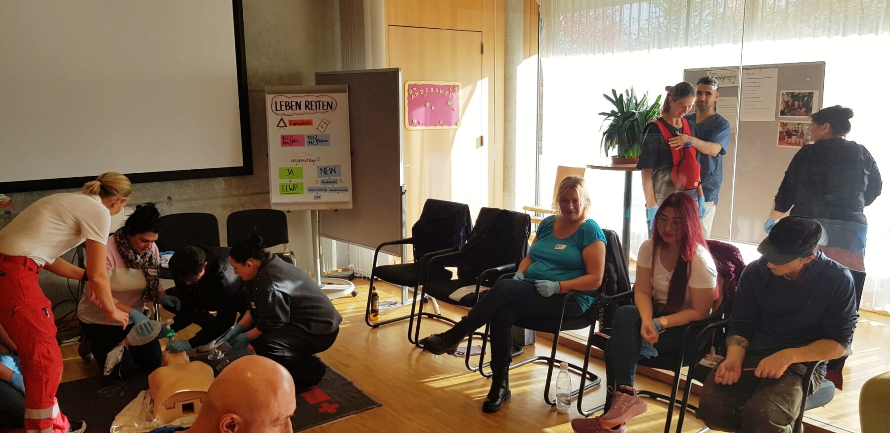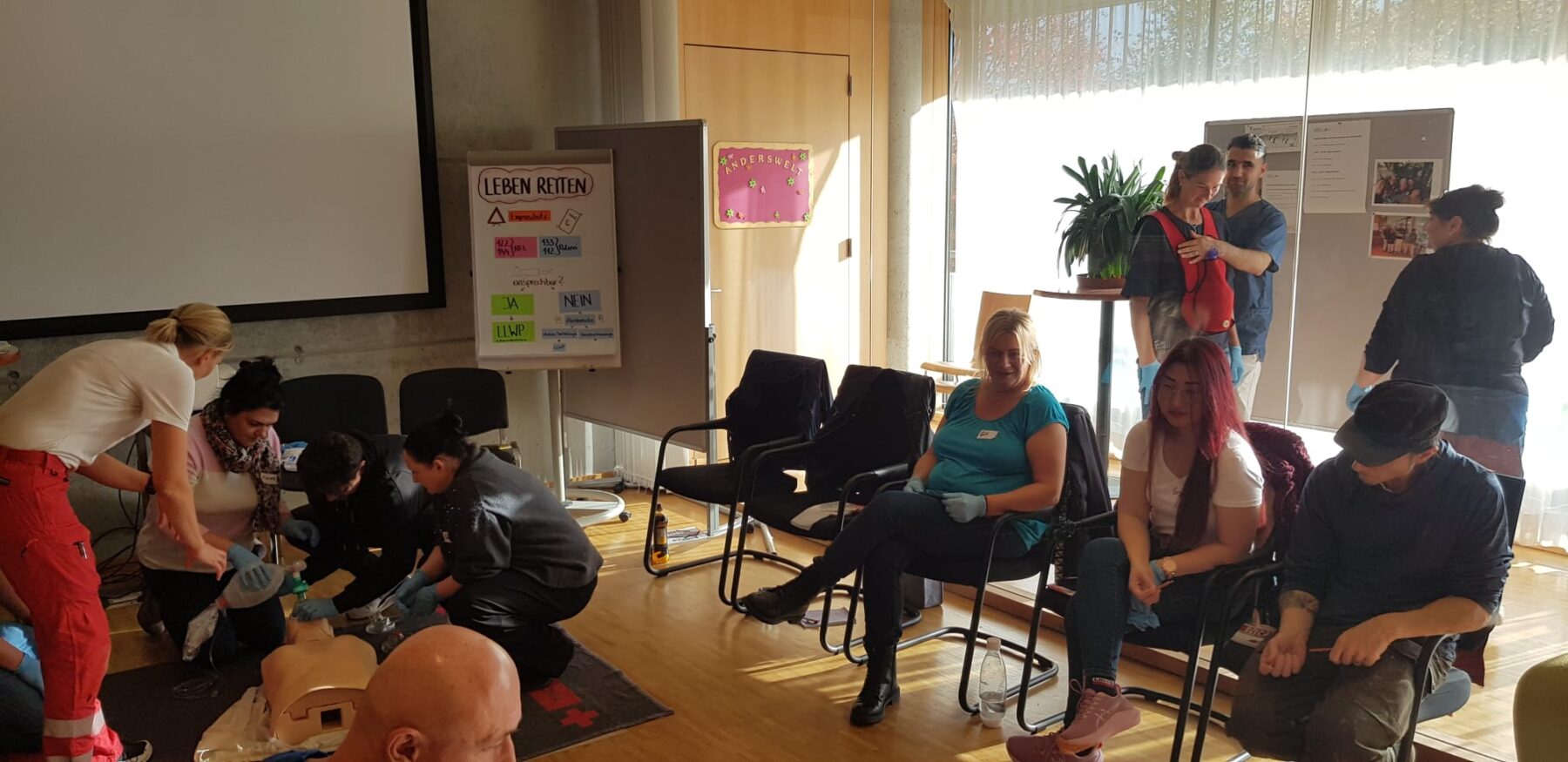 Ziel war es, bestehende Kenntnisse zu aktualisieren und zu vertiefen, damit im Alltag sofort und sicher geholfen werden kann. Der Kurs umfasste die Wiederholung lebensrettender Sofortmaßnahmen. Die Mitarbeitenden waren mit vollem Engagement dabei und zeigten Einsatz – die Begeisterung war im Team sichtbar. Der Kurs stärkte die Einsatzbereitschaft, das Verantwortungsbewusstsein und die Teamkoordination. Wir freuten uns über den offenen Austausch und das gemeinsam gewonnene Vertrauen in die eigenen Fähigkeiten.