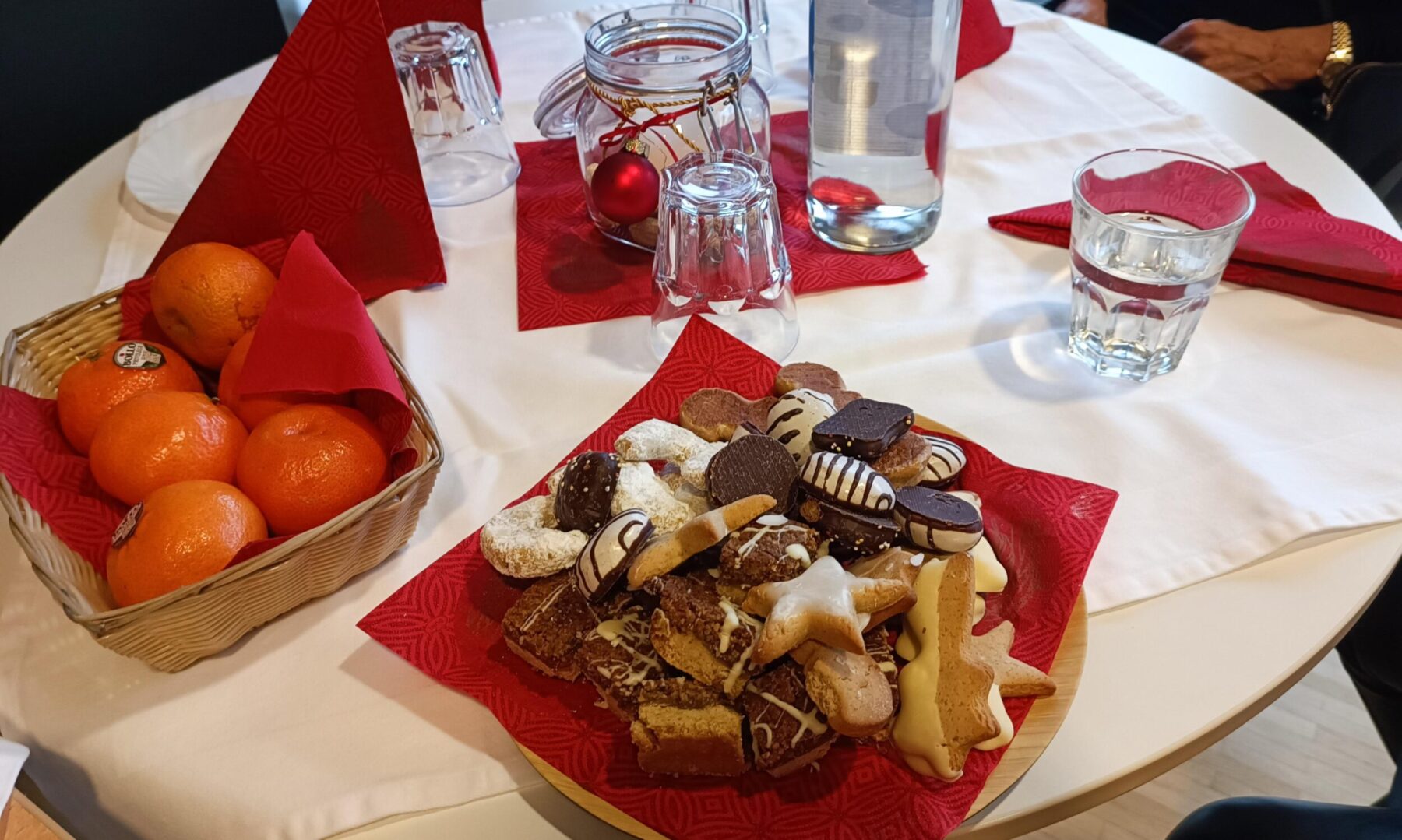Der Tisch erstrahlte festlich, mit bunten Servietten und glänzenden Dekorationen. Die selbstgemachten Kekse und der Glühwein schmeckten wunderbar; zart knusprig, liebevoll verziert, und jeder Biss hinterließ ein Lächeln auf den Lippen der Gäste.