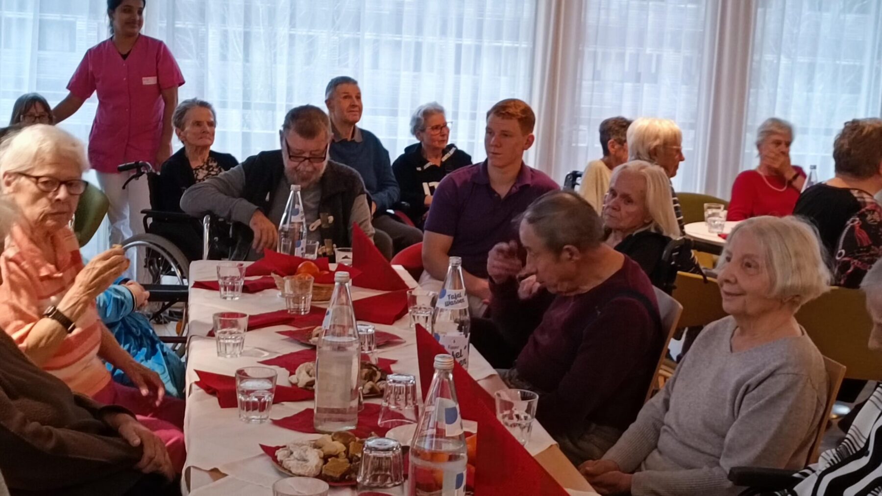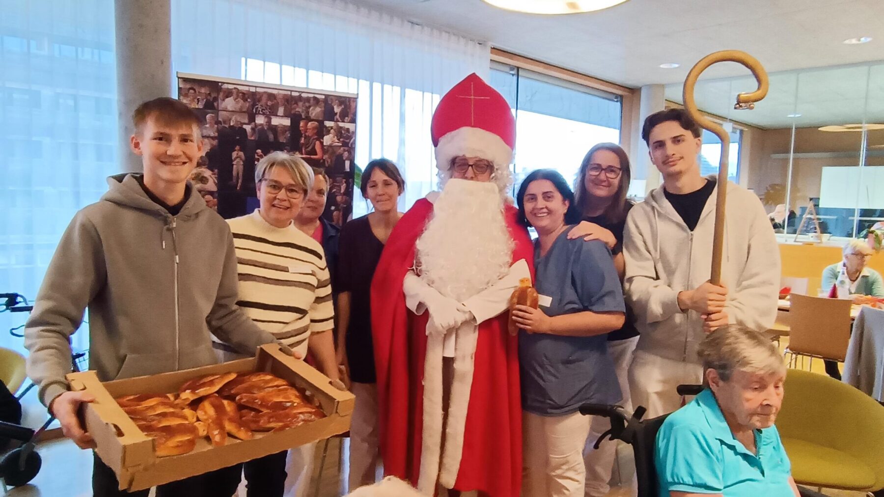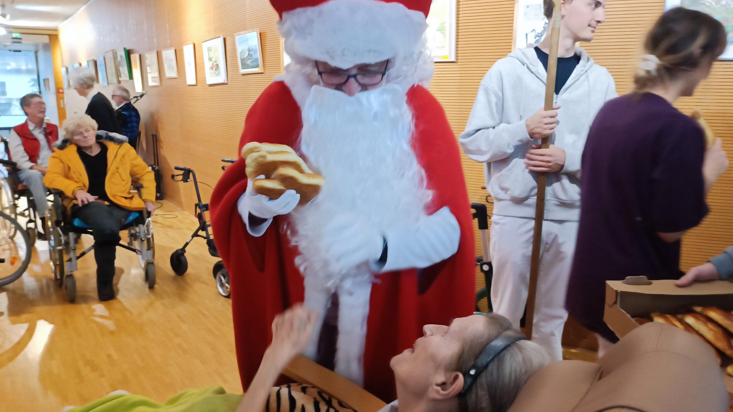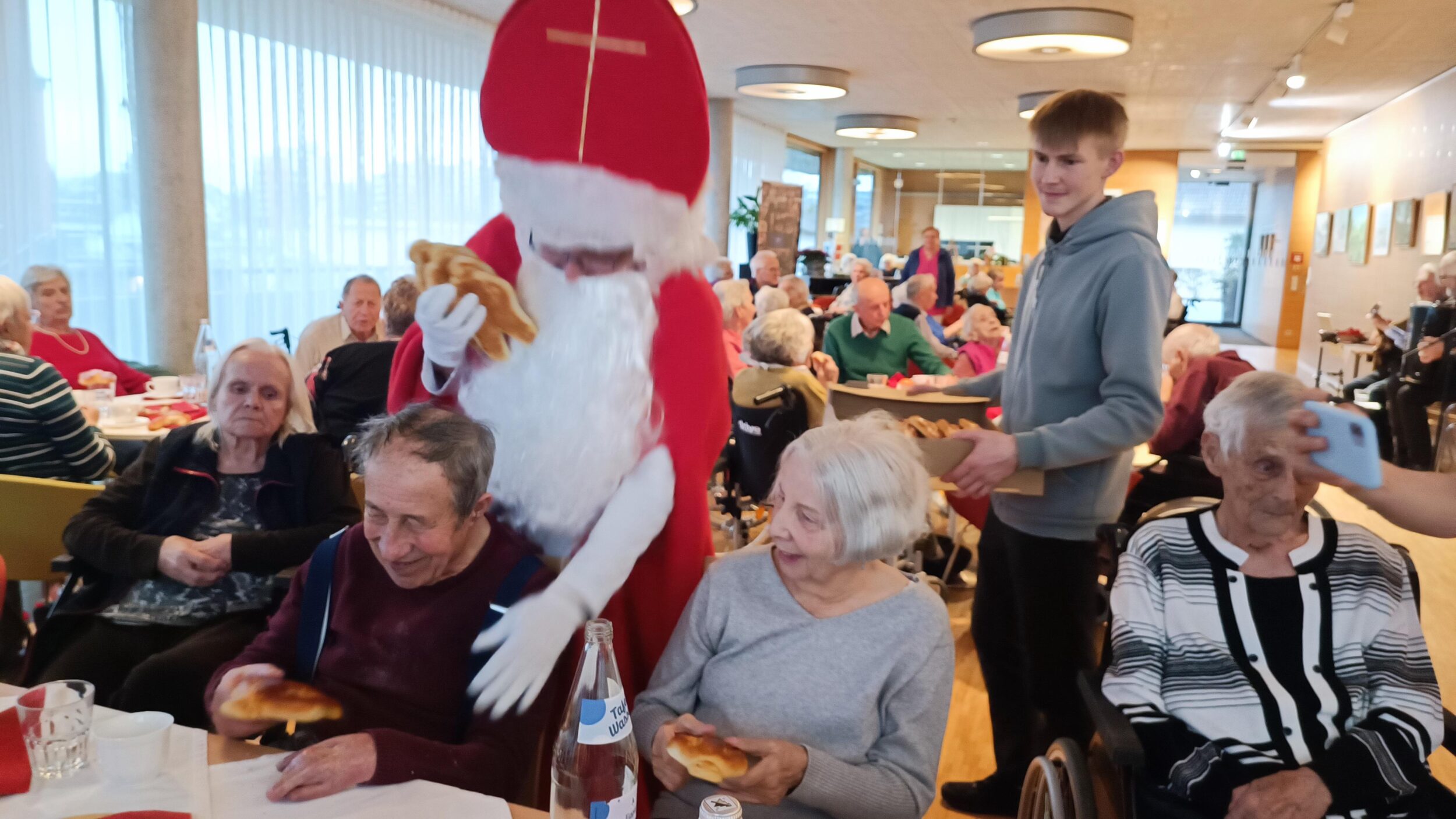 Der Nikolaus betritt das liebevoll geschmückte Pflegeheim, sein Glöckchen klingt leise und beruhigend. Die Bewohnerinnen und Bewohner schauen auf, die Augen leuchten neugierig und warm. Eine kurze, ruhige Geschichte entfaltet sich im Raum und trägt eine sanfte, märchenhafte Atmosphäre. Im Duft von Zimt und Nelken mischen sich leise Lächeln, erinnernde Blicke und zustimmendes Nicken.