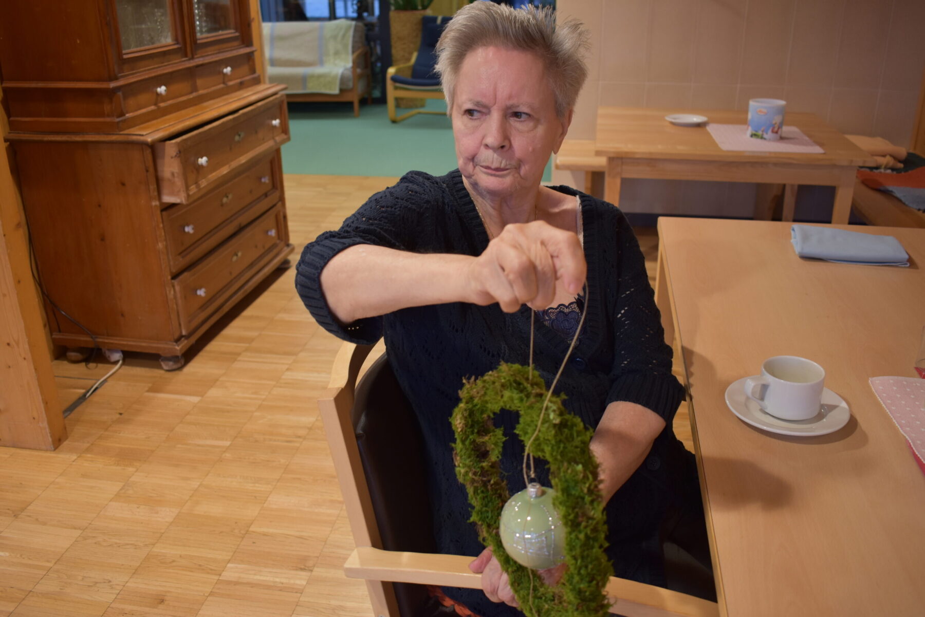 An einem trüben Tag im November 2021 wurden in den Wohnbereichen eifrig Kränze und Weihnachtsschmuck mit Naturmaterialien und Kugeln gebastelt. Die Bewohner:innen waren mit Eifer dabei und hatten anschließend eine große Freude mit ihren Ergebnissen. Wir bedanken uns ganz herzlich bei unseren Mitarbeiter:innen für ihren fleißigen Einsatz und die große Unterstützung, die sie den Bewohner:innen erwiesen haben.