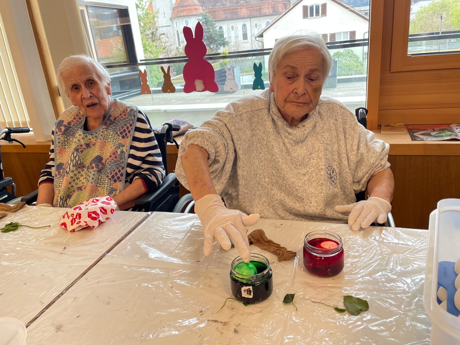 Gemeinsam mit den Bewohner:innen wurde die Karwoche bewusst genutzt, um traditionelle Osterbräuche wieder aufleben zu lassen. Im Rahmen der Erinnerungsarbeit wurde das Thema Ostern mit unterschiedlichen Methoden in den Alltag integriert.