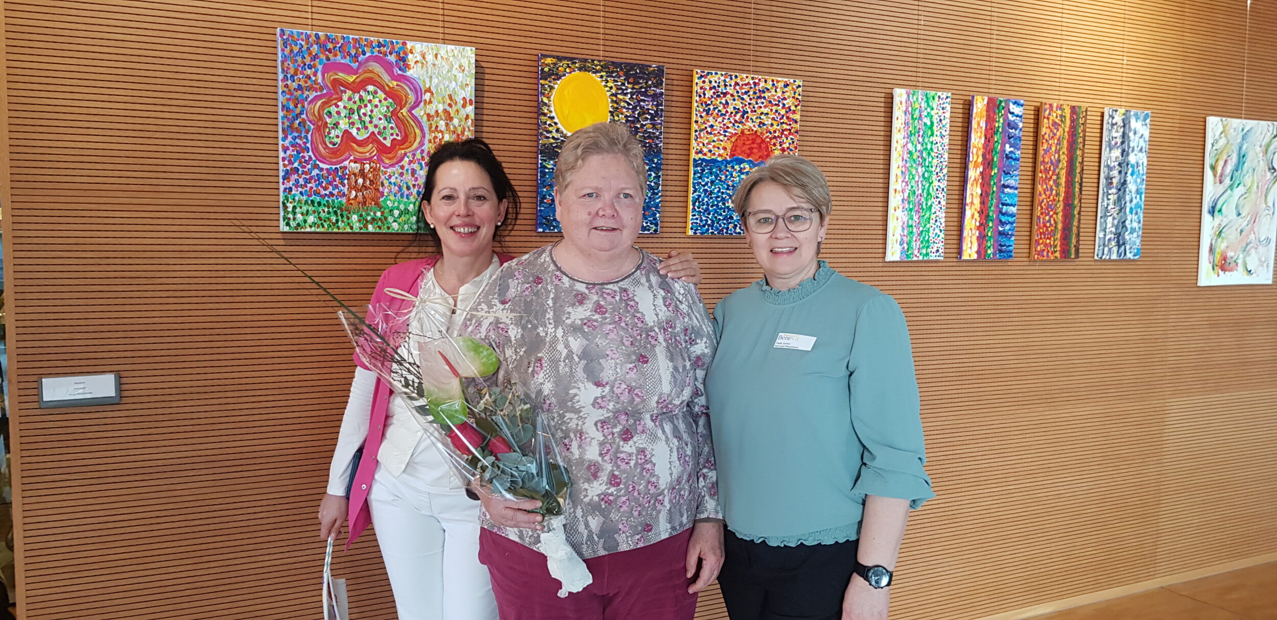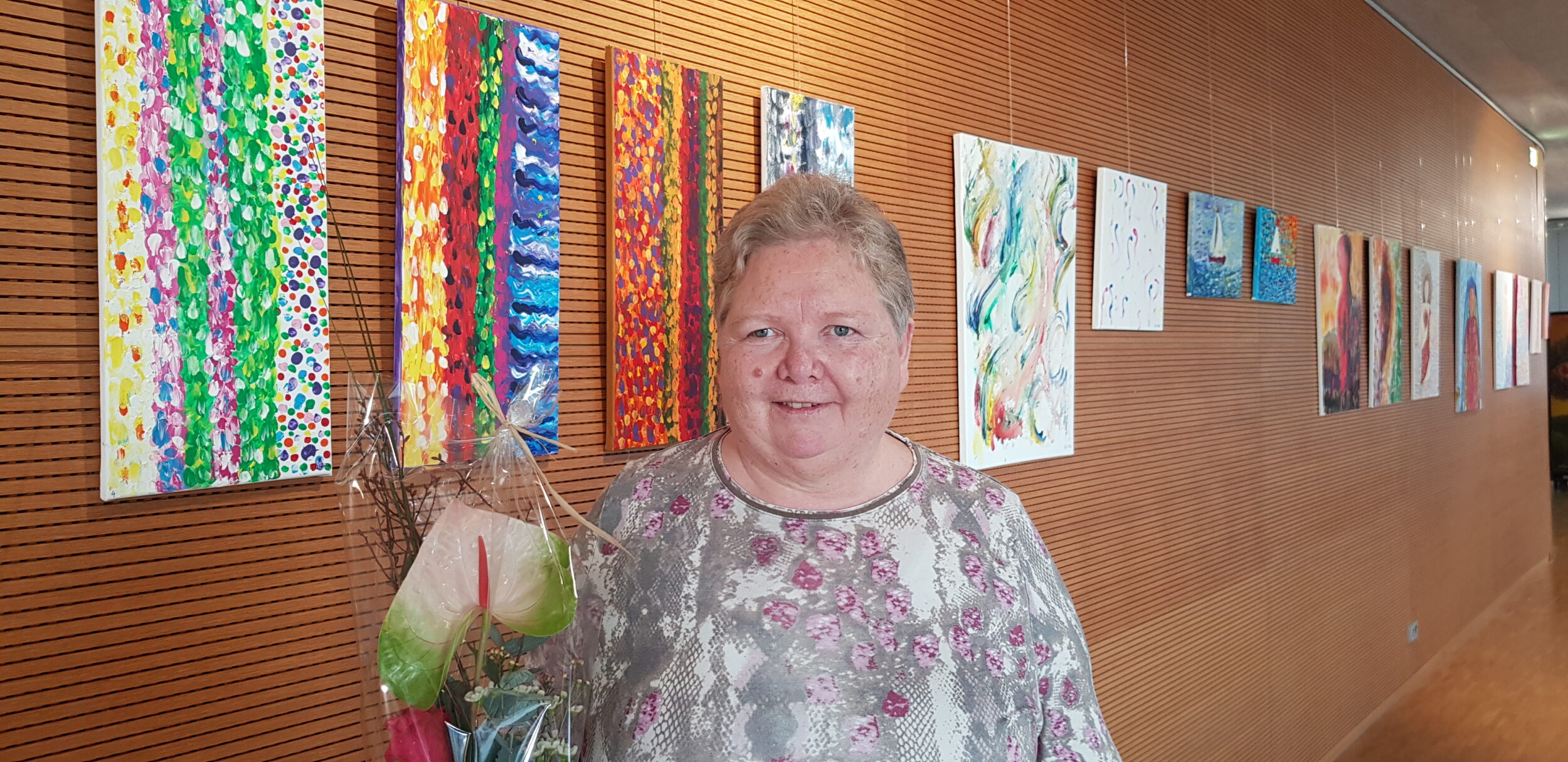 Unsere Bewohnerin vom BENEVIT Sozialzentrum Weidach stellte ihre Bilder bei uns im Haus aus.