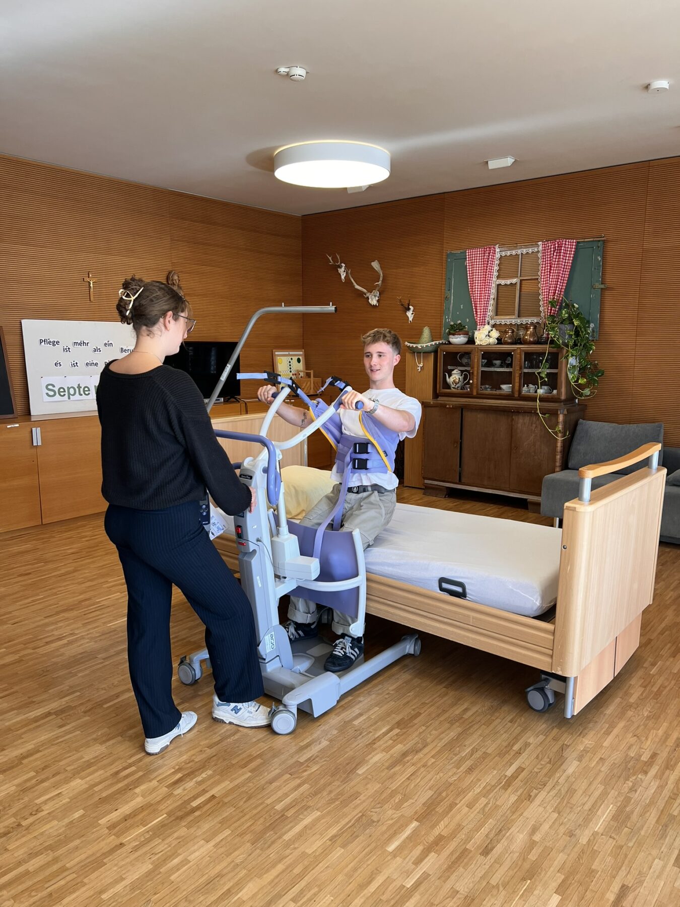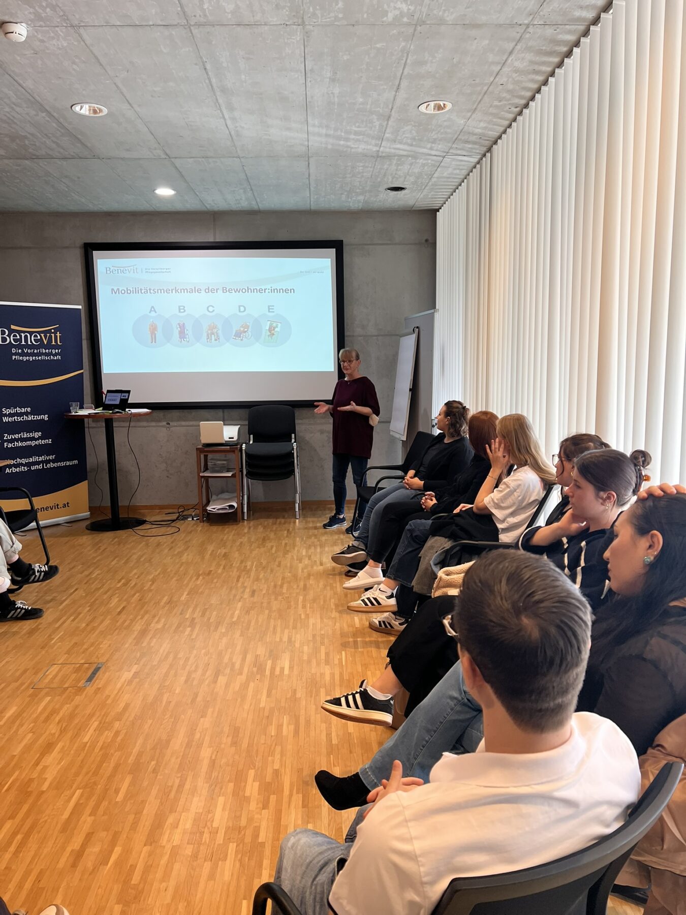 Am 8. Oktober 2025 fand im BENEVIT Sozialzentrum Weidach ein praxisnaher Workshop unter dem Titel „Mobilität ermöglichen durch ergonomische Rahmenbedingungen“ statt. Zu Gast war eine Klasse der Krankenpflegeschule Unterland in Bregenz mit 25 Schüler:innen im dritten Ausbildungsjahr, begleitet von zwei Lehrerinnen.